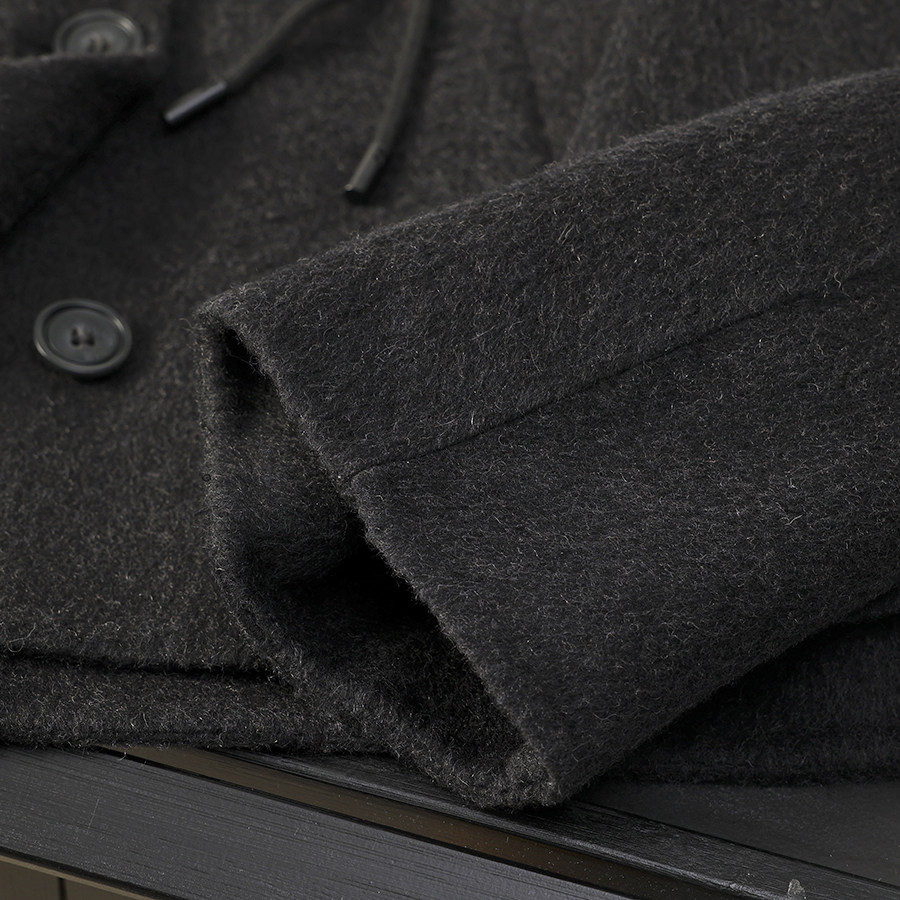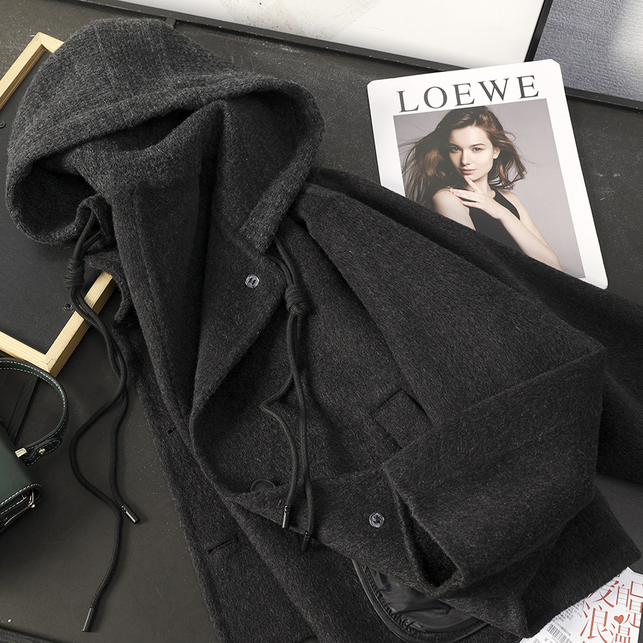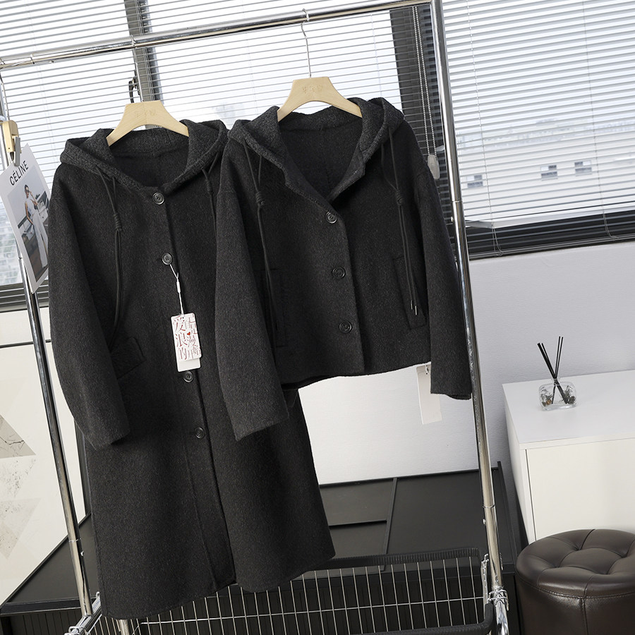 华子家 双面呢羊毛大衣女2025秋冬新款连帽短款长款毛呢外套45233