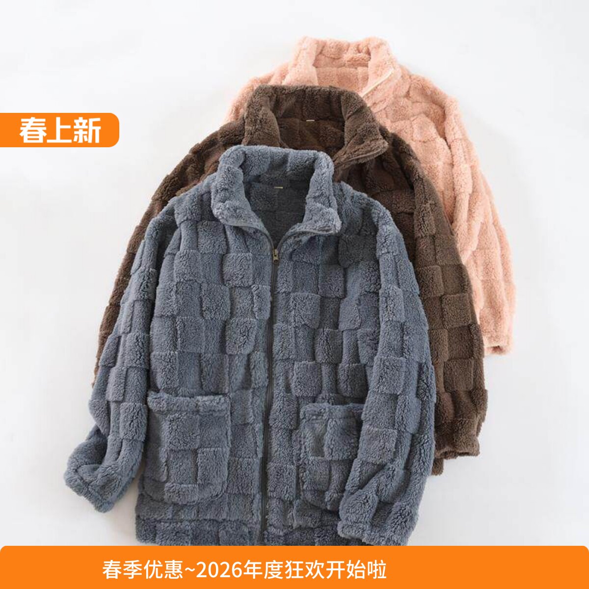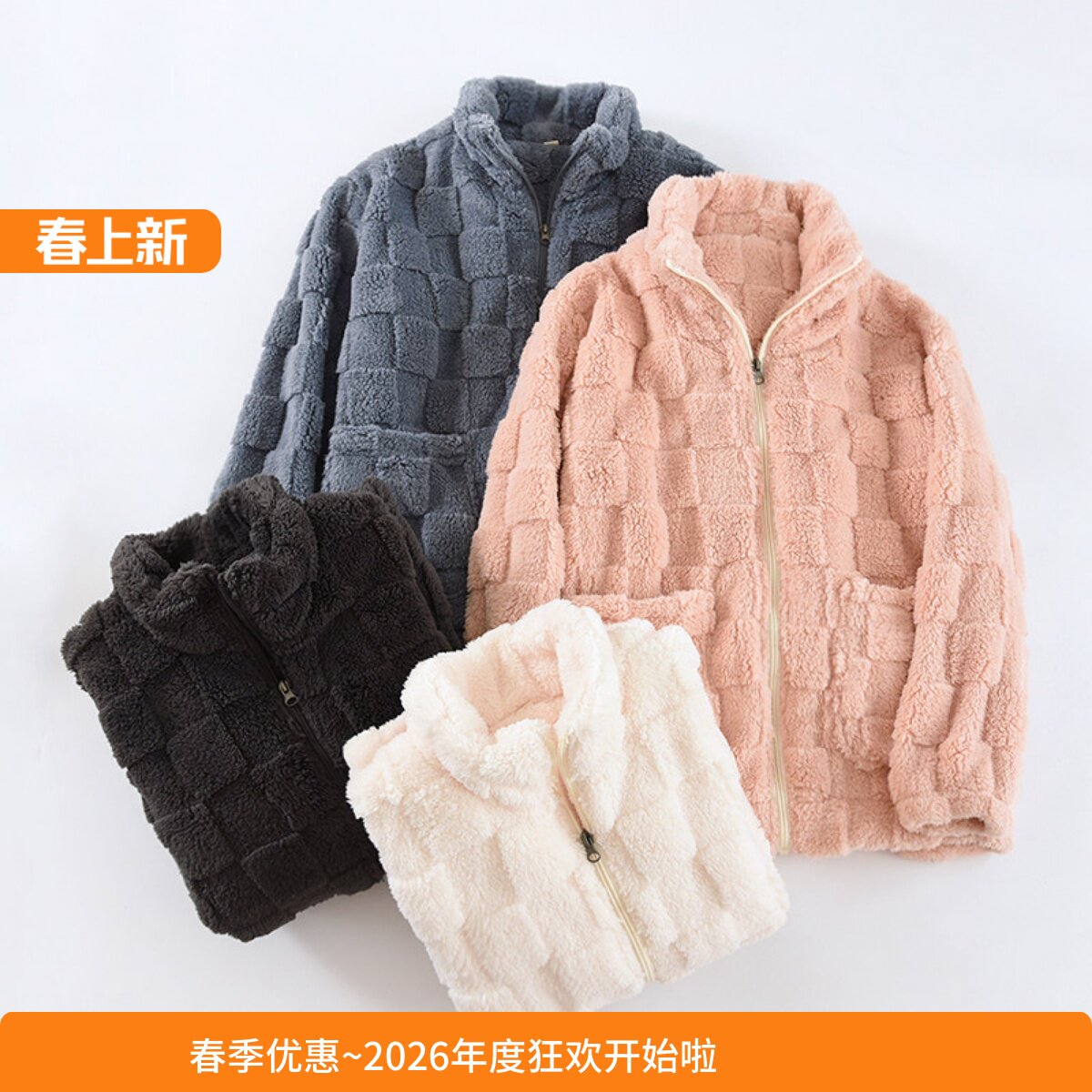 拉链上衣情侣珊瑚绒睡衣男女秋冬季加厚法兰绒长袖高领男士保暖