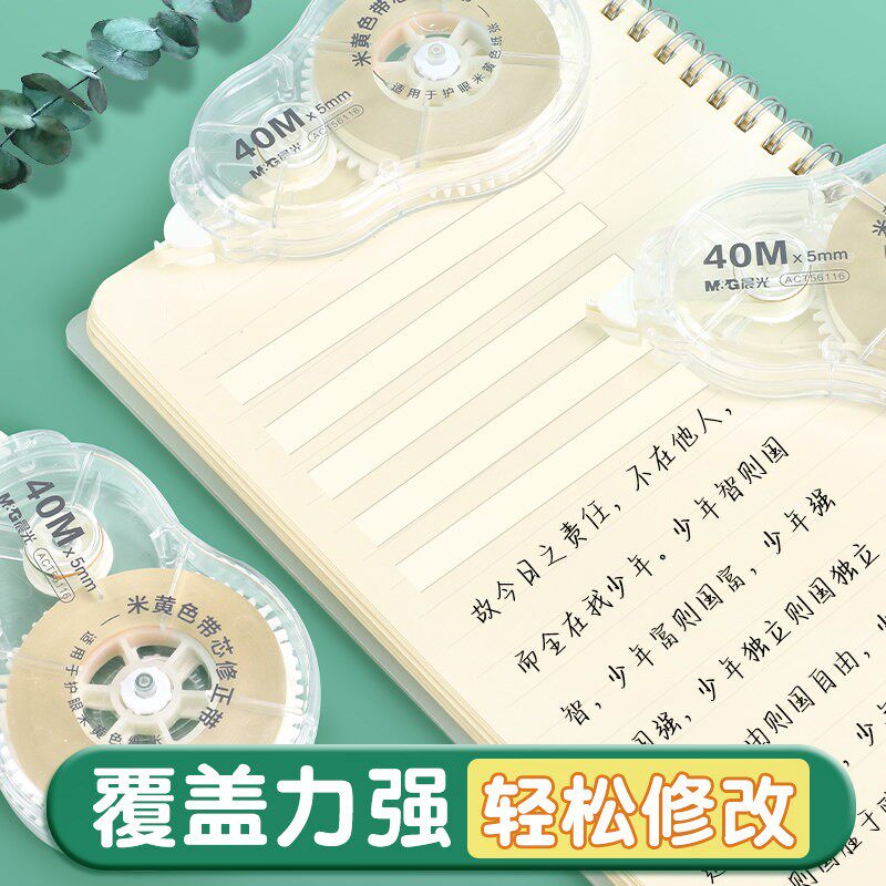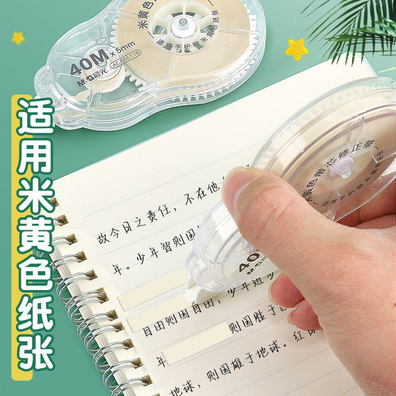 晨光原纸色修正带米黄色信大容量修正带小学生专用涂改带女生男生简约款隐形无痕改正带顺滑不断带40米加量款