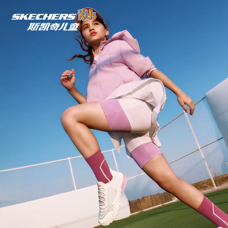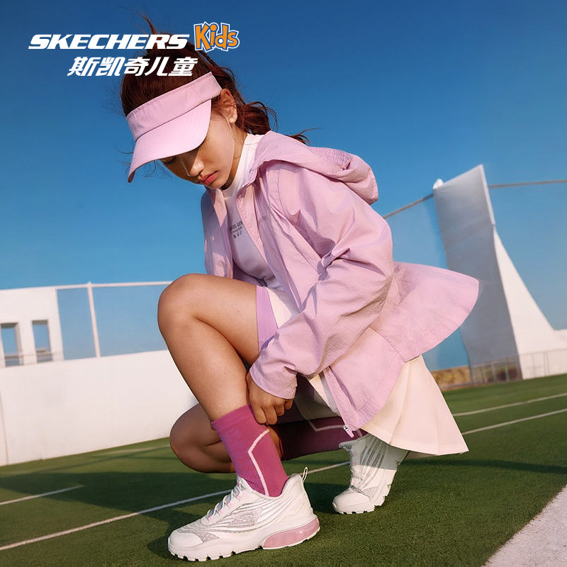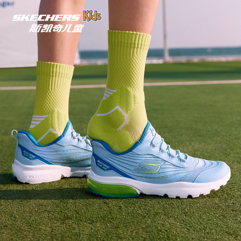 Skechers斯凯奇光轮闪穿鞋儿童春夏一脚蹬童鞋女童网面透气运动鞋