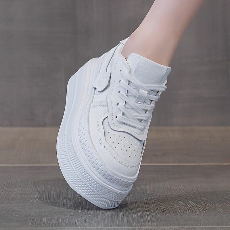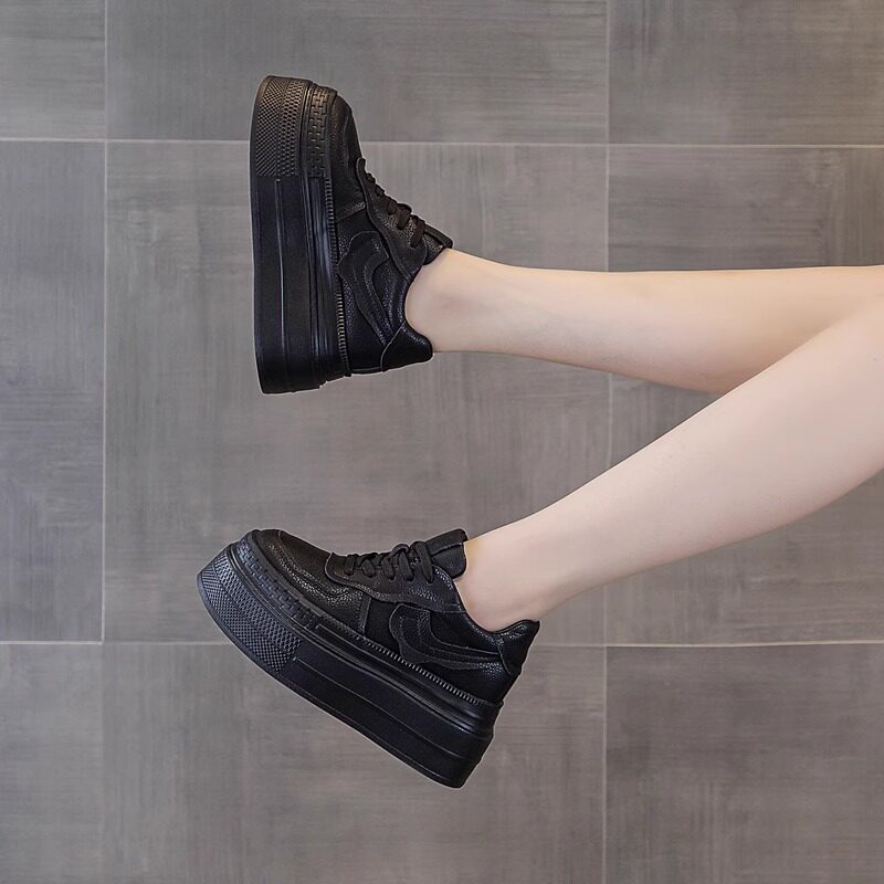 内增高小白鞋女款2026春季新款松糕厚底休闲百搭系带黑色单鞋板鞋