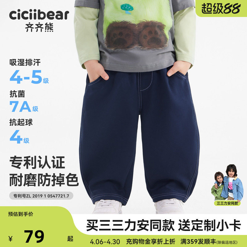【秀场同款】齐齐熊男童裤子春装新款宝宝卫裤儿童装宽松直筒