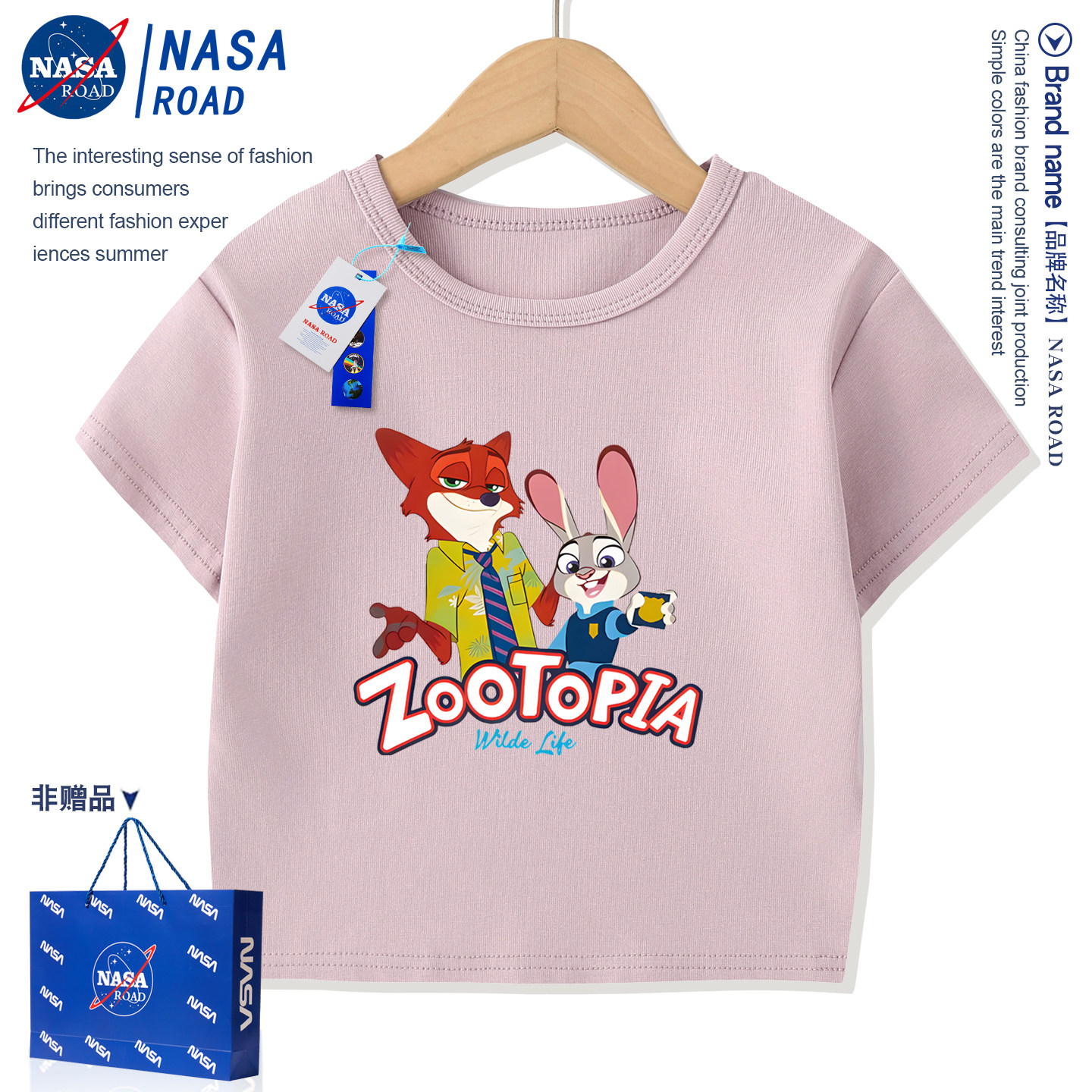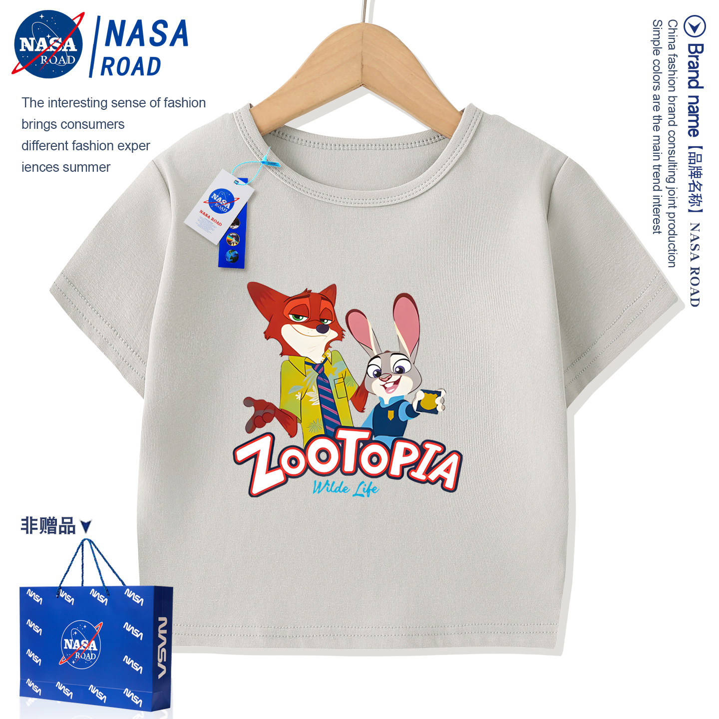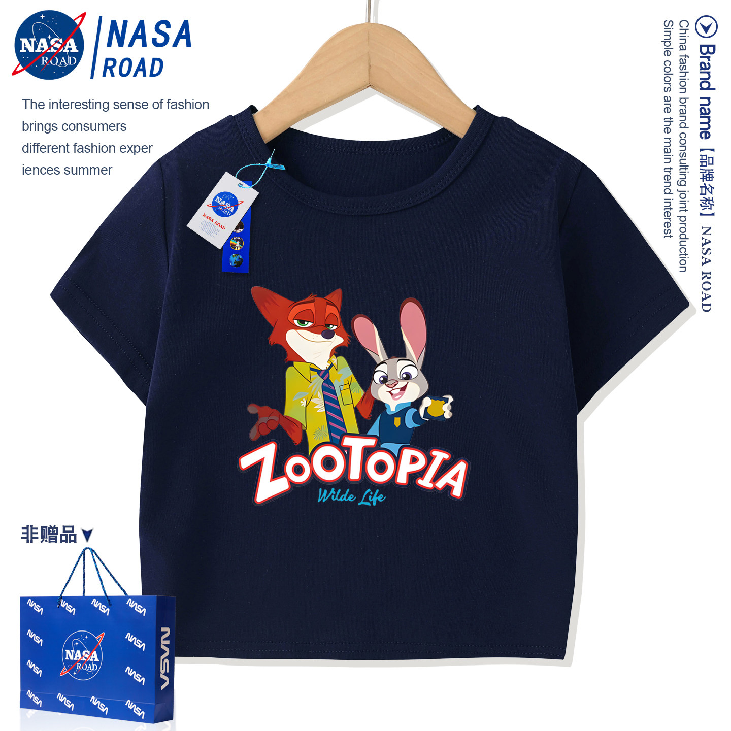 NASA联名疯狂动物城儿童短袖夏季男童T恤卡通女童半袖宝宝童装潮