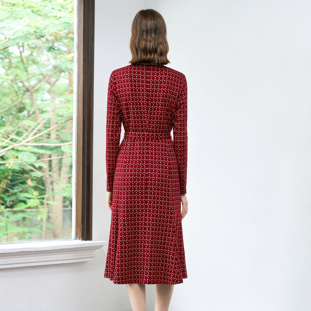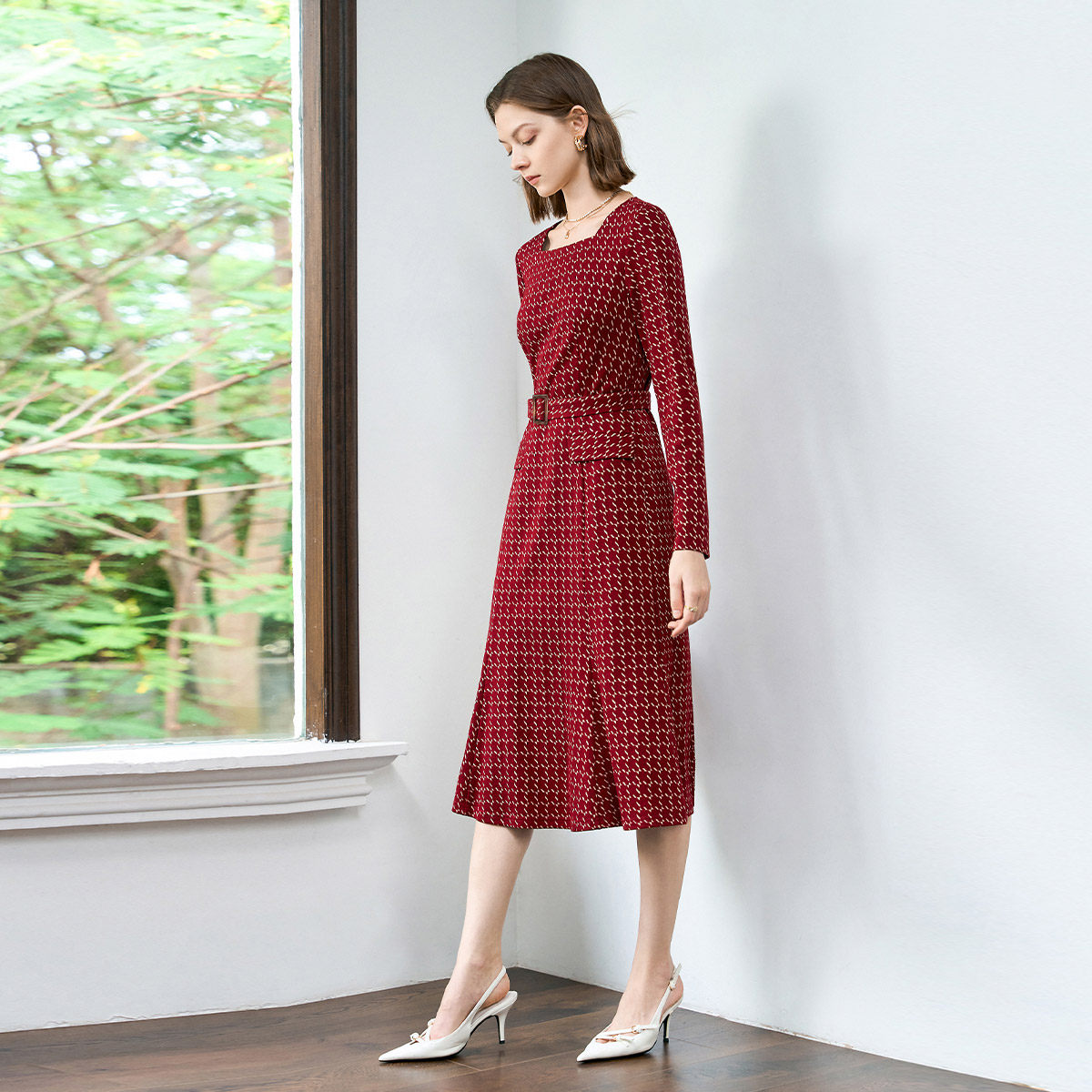 颜域简约通勤中长款连衣裙女2026早春新款修身显瘦气质长袖裙子