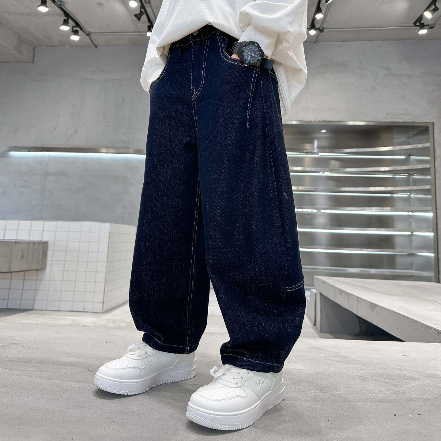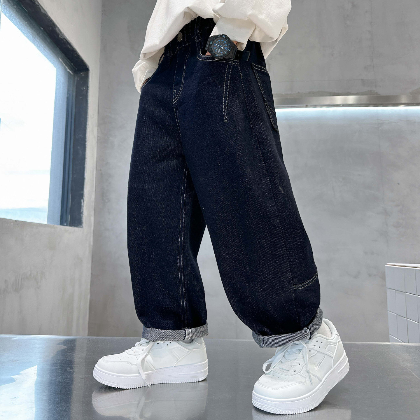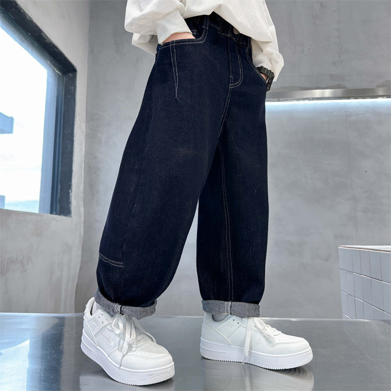 男童裤子春秋款2026新款儿童牛仔裤防褪色夏季中大童男孩弯刀长裤