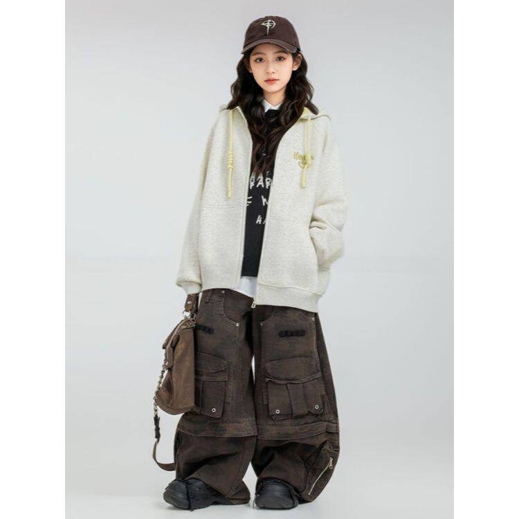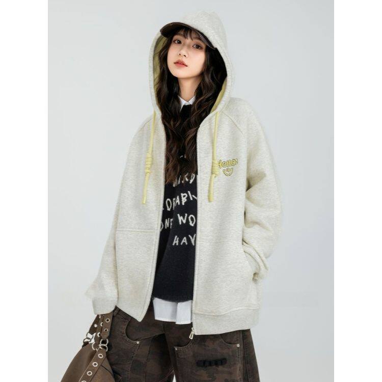 女童卫衣外套秋冬2026新款初中生女大童加绒洋气连帽上衣儿童开衫