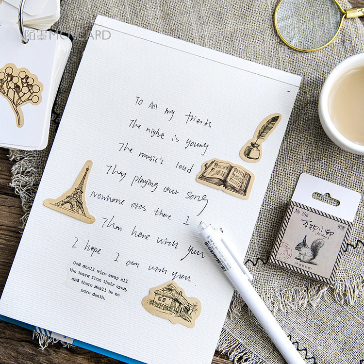 复古万物印章牛皮纸色手帐贴纸动物装饰diy信封封口素材盒装贴画