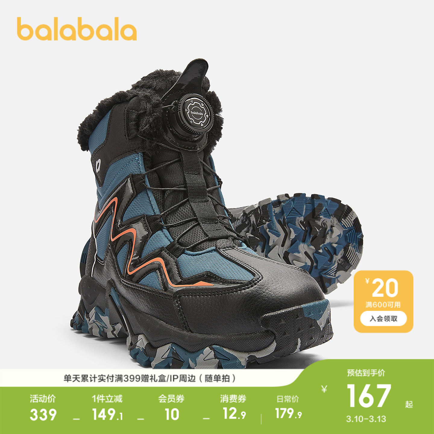 311线报网描述:加绒保暖运动靴,旋钮扣防滑靴子