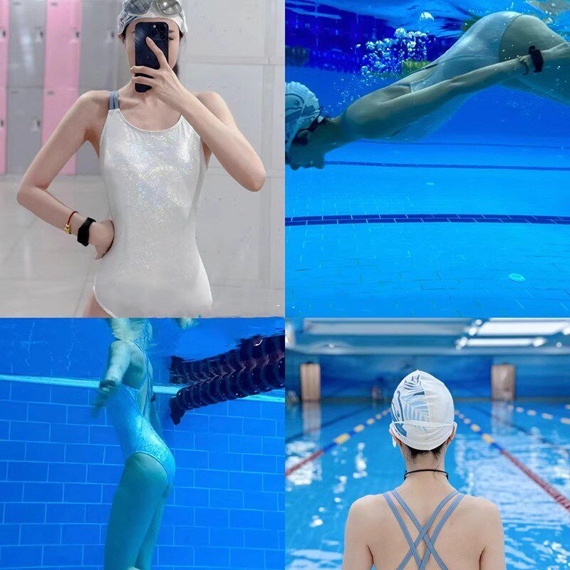 网红泳衣女款遮肉高级竞速泳衣带胸垫游泳纯色绝美游泳馆