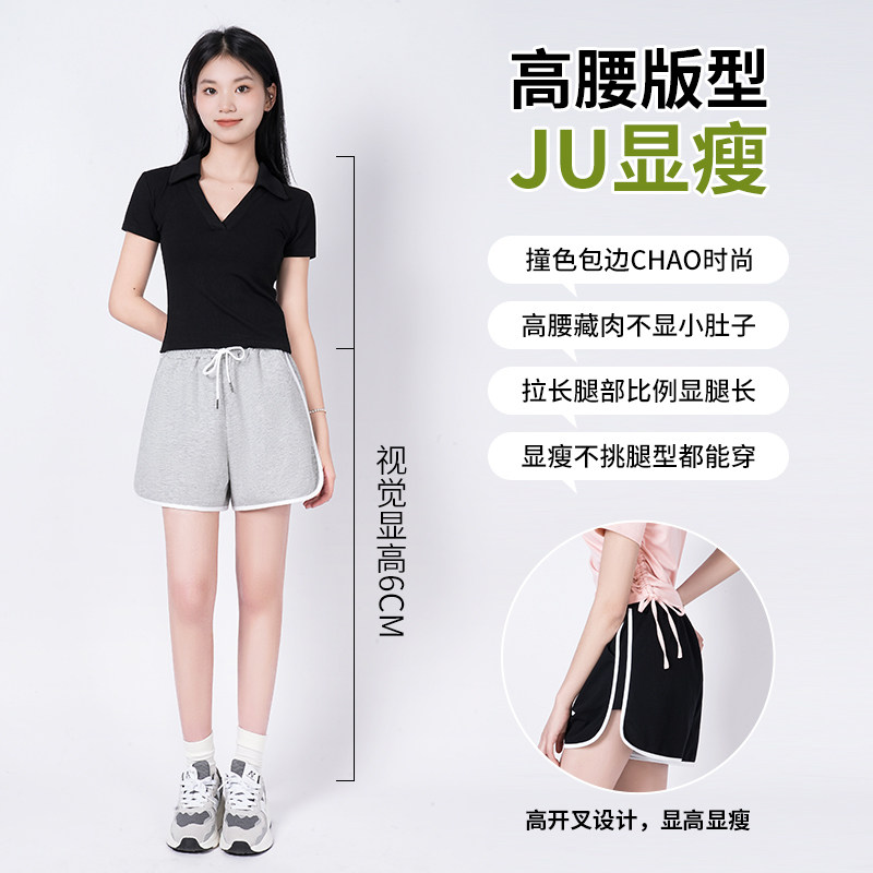 拉夏贝尔运动短裤女款夏季小个子休闲裤2026新款爆款显瘦高腰裤子