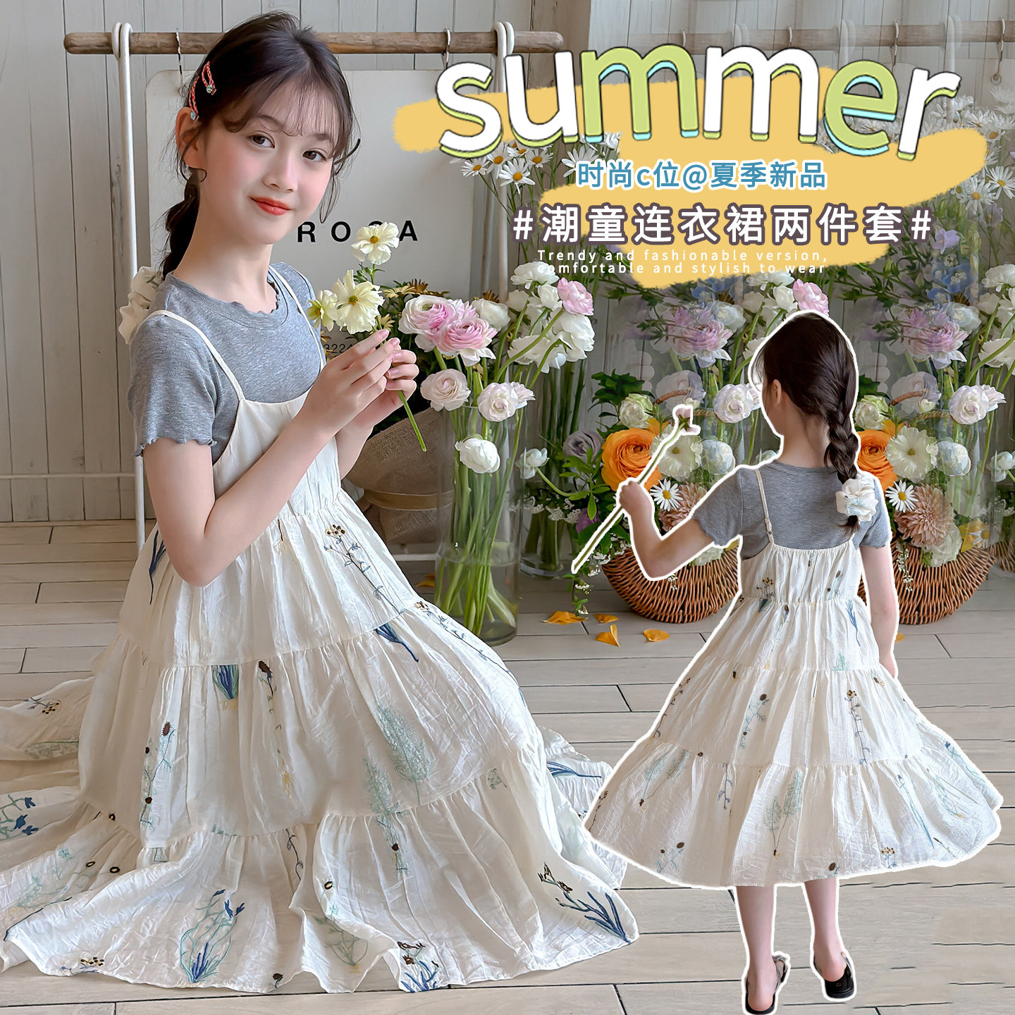 品牌专柜女童夏季连衣裙2026新款洋气童装女童春装短袖吊带裙子
