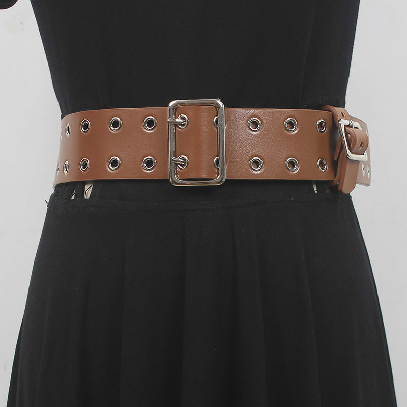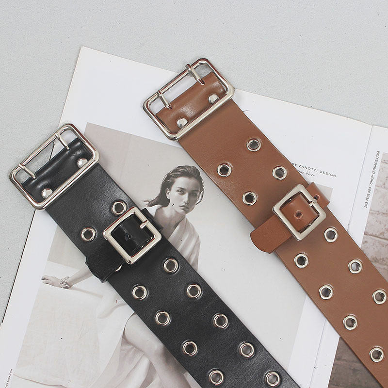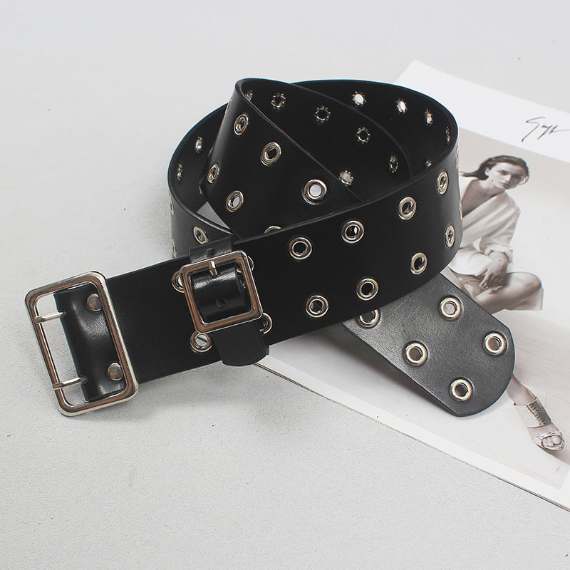 男女皮带头层牛皮明星同款双排扣眼朋克风机车百搭牛仔裤真皮腰带