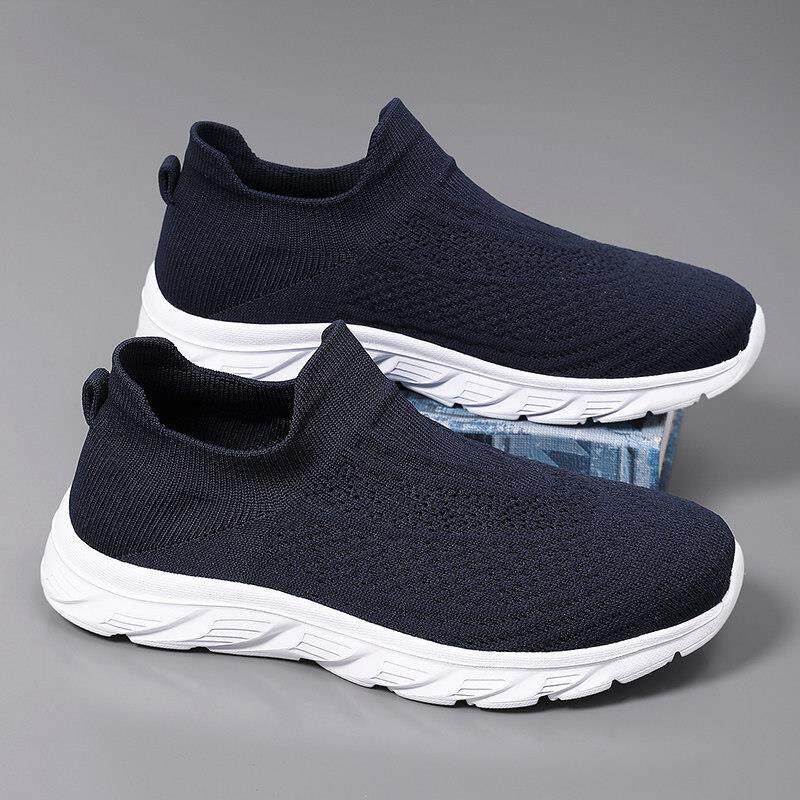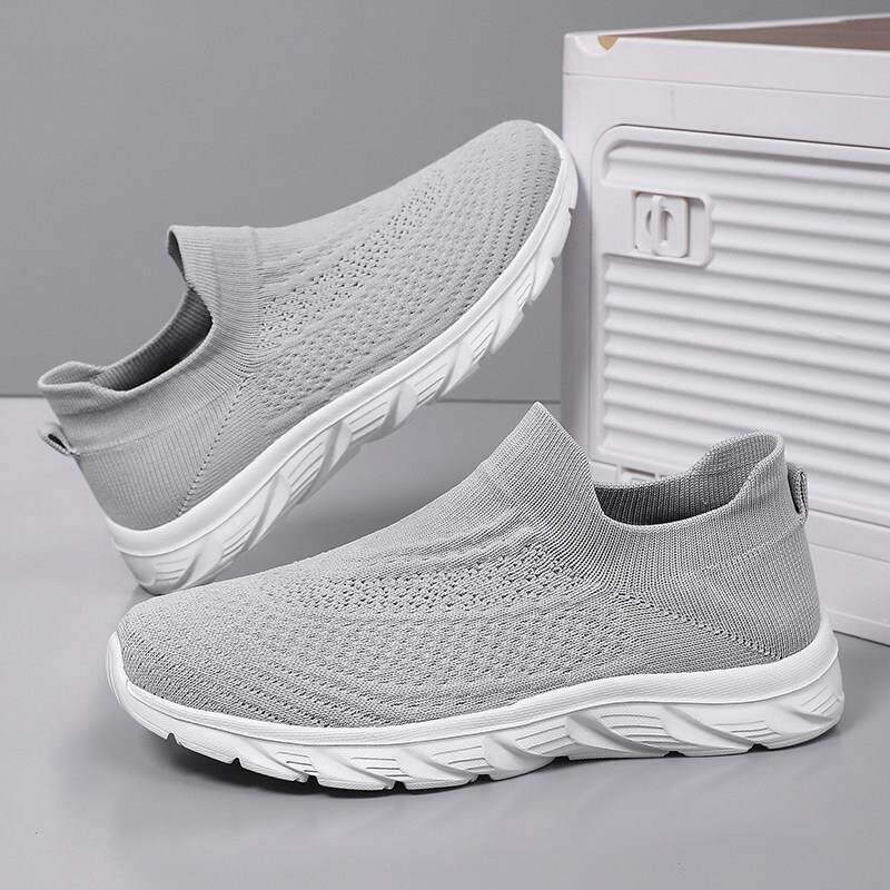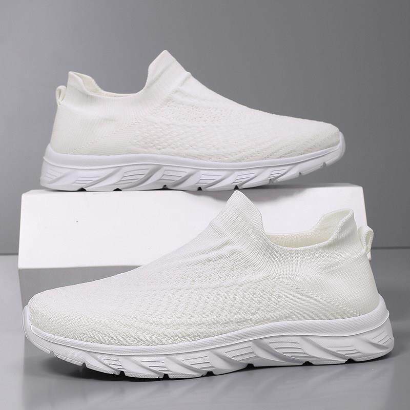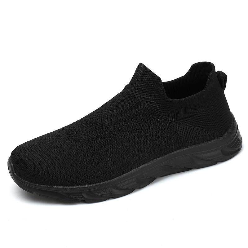 黑色一脚蹬男鞋夏季透气网面飞织轻便软底百搭上班工作大码袜子鞋