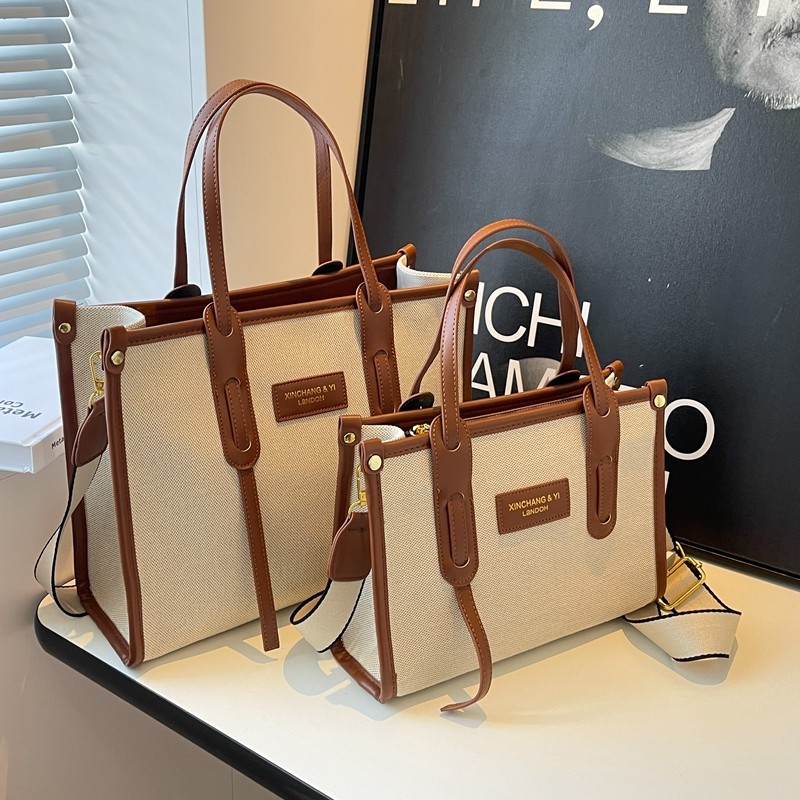 大容量帆布包女2026新款高级感百搭宽带斜挎包洋气手提托特通勤包
