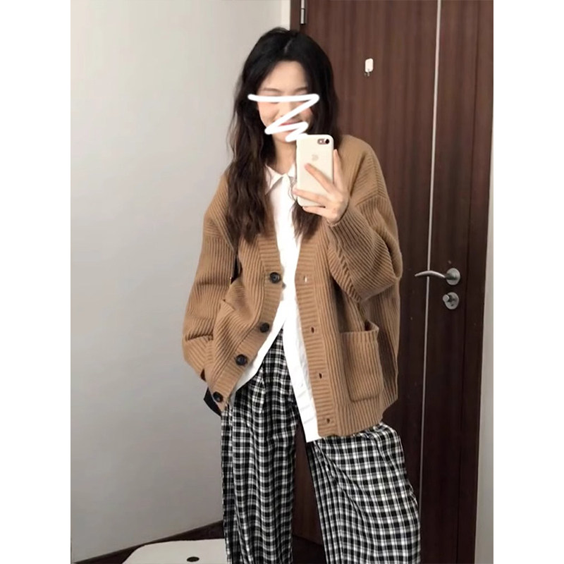 针织开衫V领毛衣女秋冬2026新款高级感慵懒风小个子加厚外套潮ins