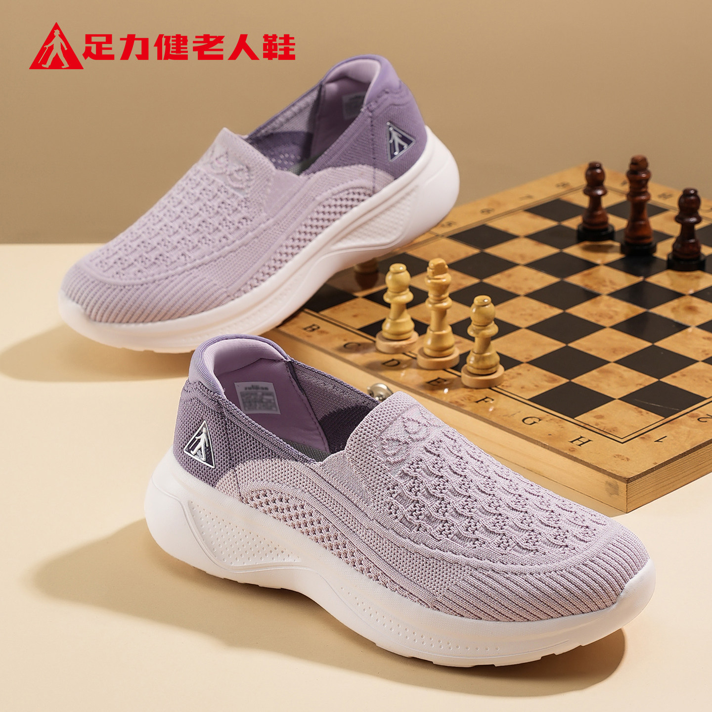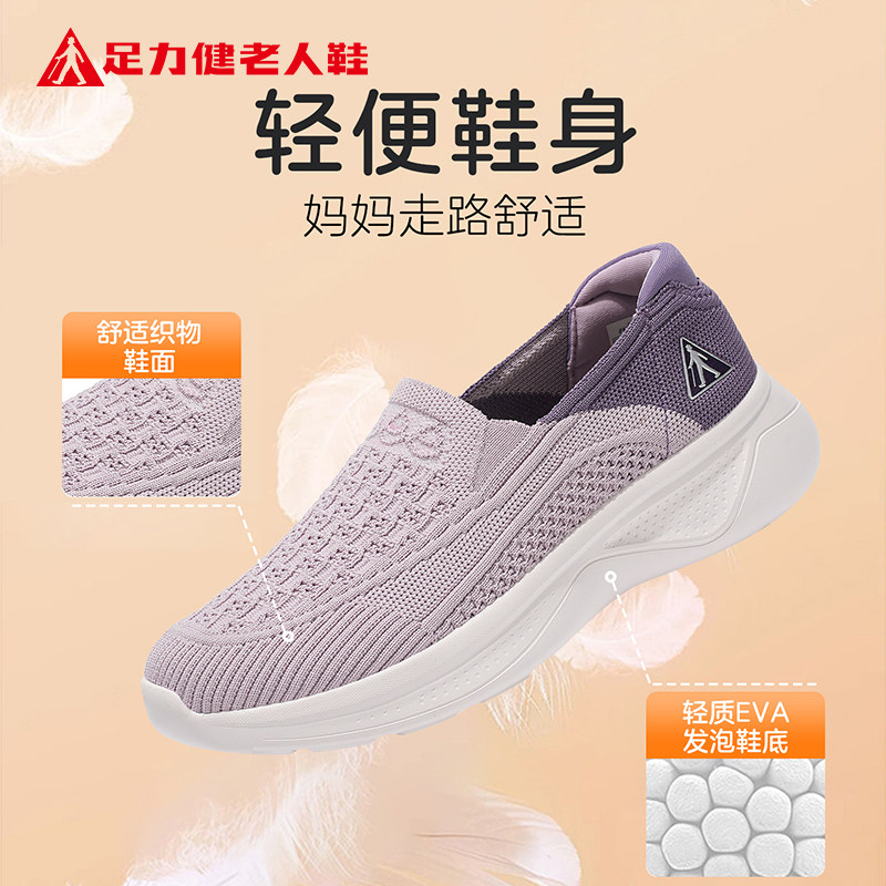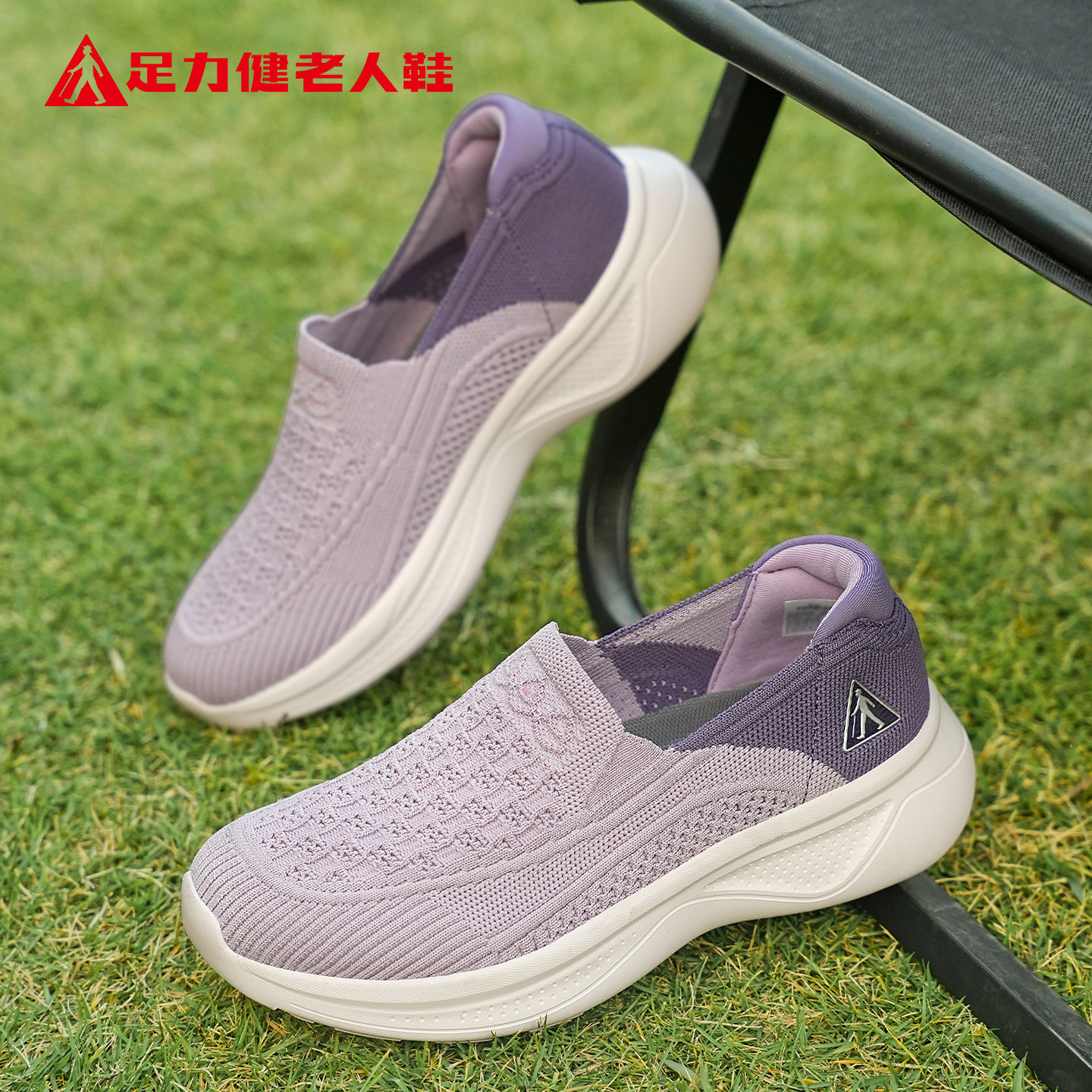 足力健老人鞋旗舰店正品2026夏季新款一脚蹬软底飞织网面透气女鞋