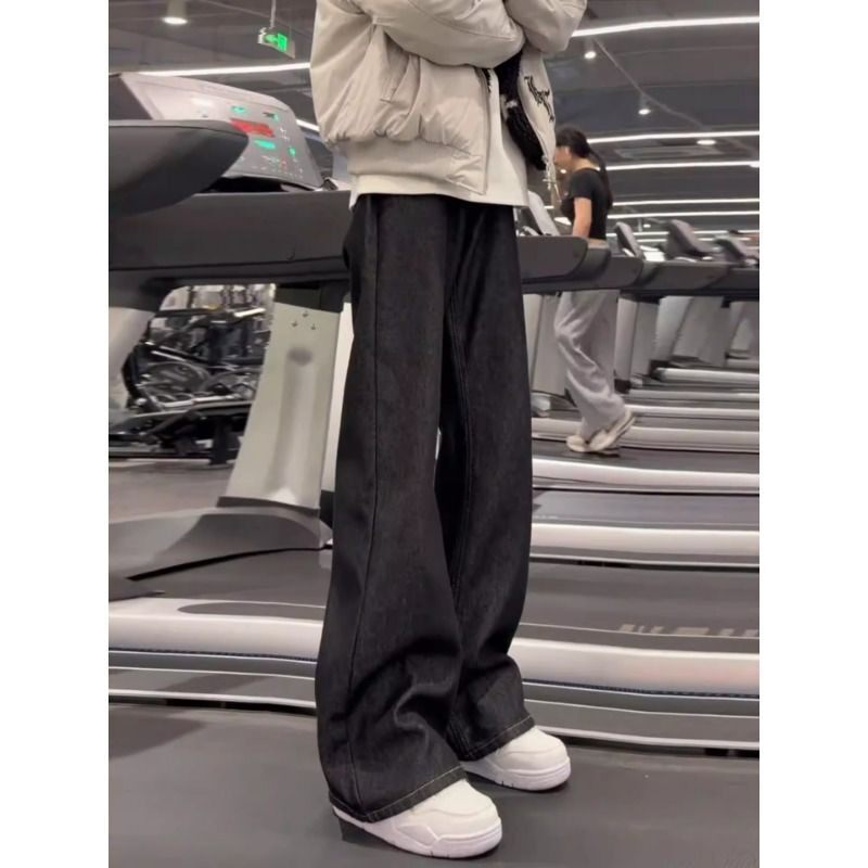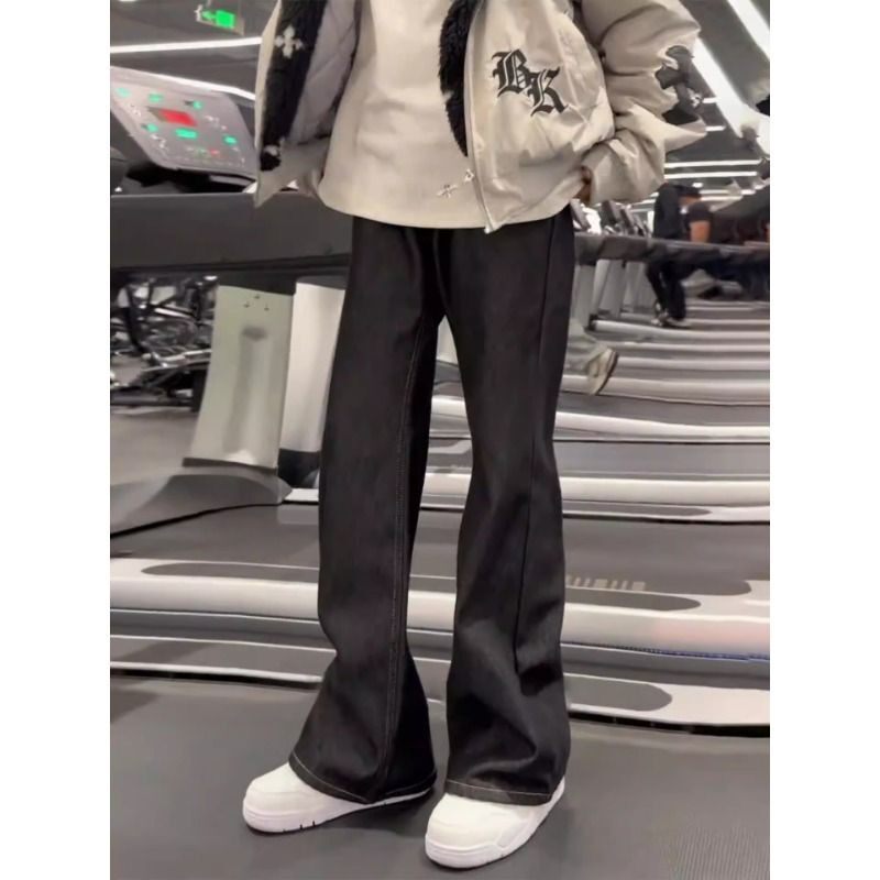 黑痞帅微喇牛仔裤丹宁原牛男款春夏修身显瘦直筒裤加长高个子阔腿