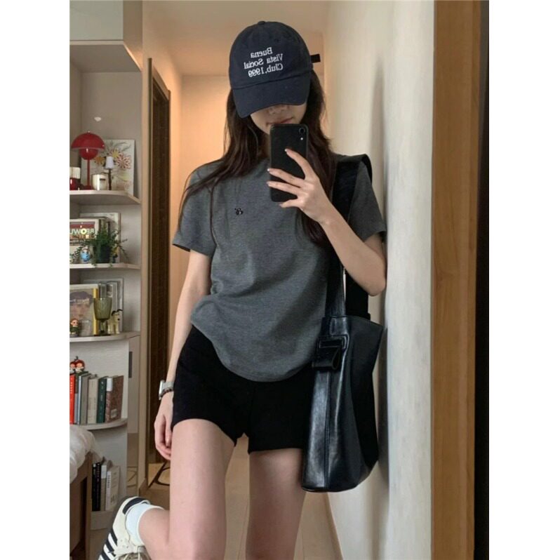 设计感别致刺绣圆领纯棉短袖T恤女夏季2026新款宽松显瘦正肩上衣