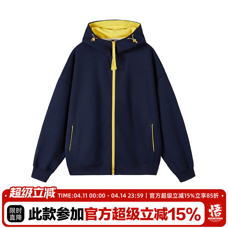 悟空有货秋季撞色拉链开衫卫衣男女潮牌宽松情侣休闲百搭连帽外套