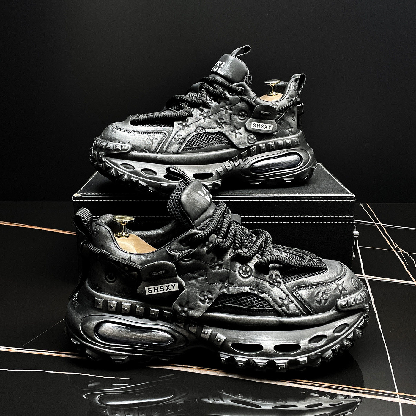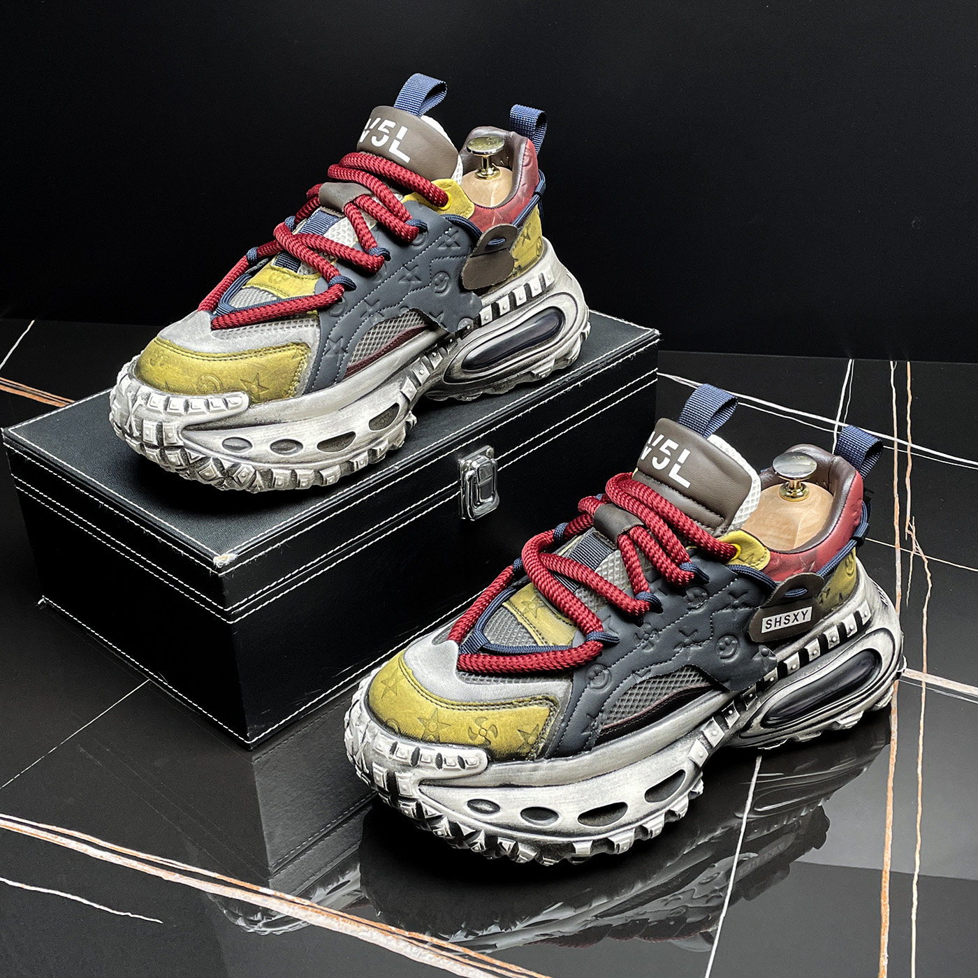 厚底老爹鞋男款秋冬气垫慢跑鞋潮牌男鞋高级感复古做旧运动休闲鞋