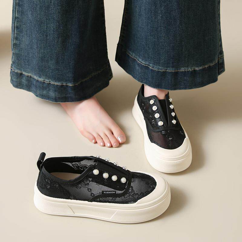 春夏网眼透气渔人女鞋2026新滑上滑上多功能软底黑色帆布运0307z