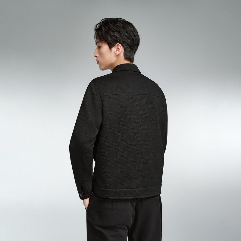 海澜之家休闲夹克外套男款春秋季轻商务茄克男士黑色翻领工装上衣