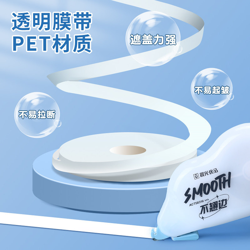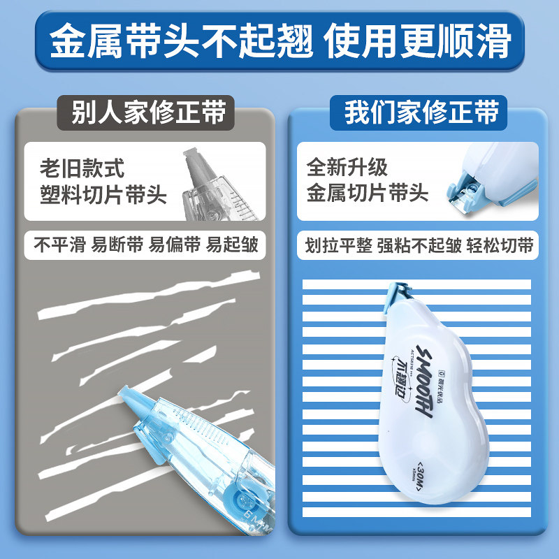 晨光不翘边修正带涂改带大容量小学生专用原纸色改正带隐形改错带改字带初中生静音修改带消字涂改液官方正品
