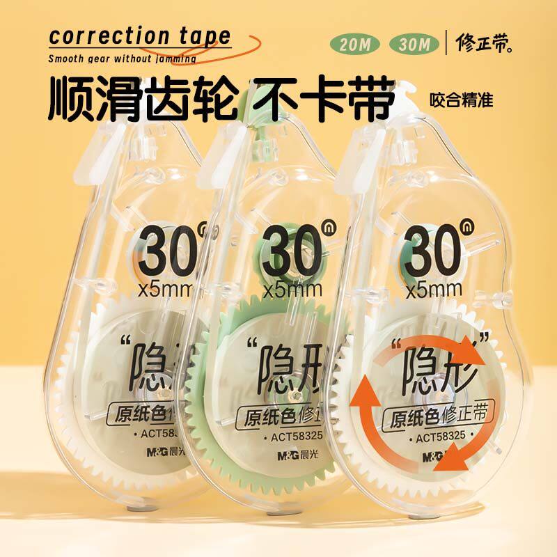晨光隐形修正带原纸色大容量PET透明带芯金属切片带头简约米黄色纯色涂改带初中小学生涂改无痕涂改带改正带