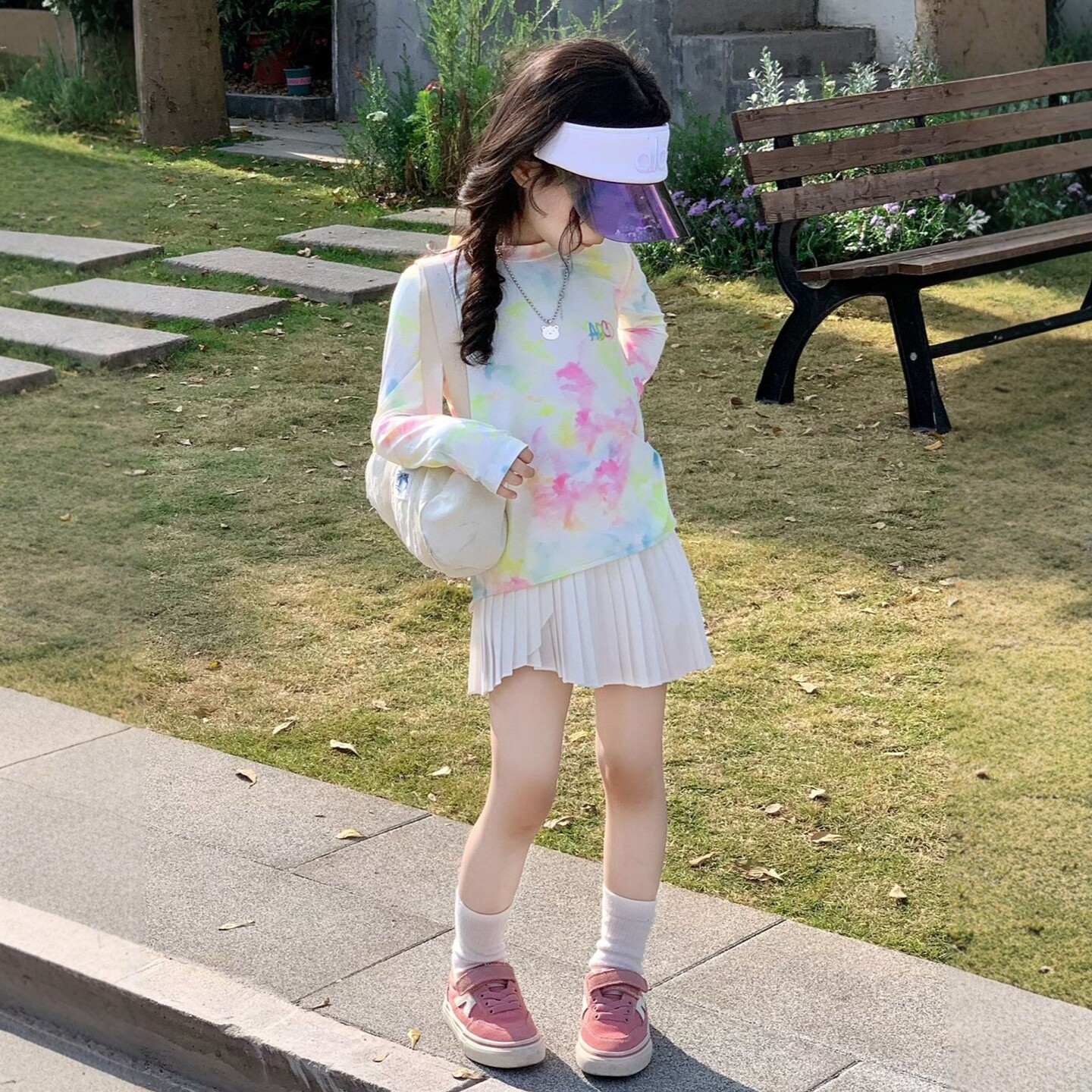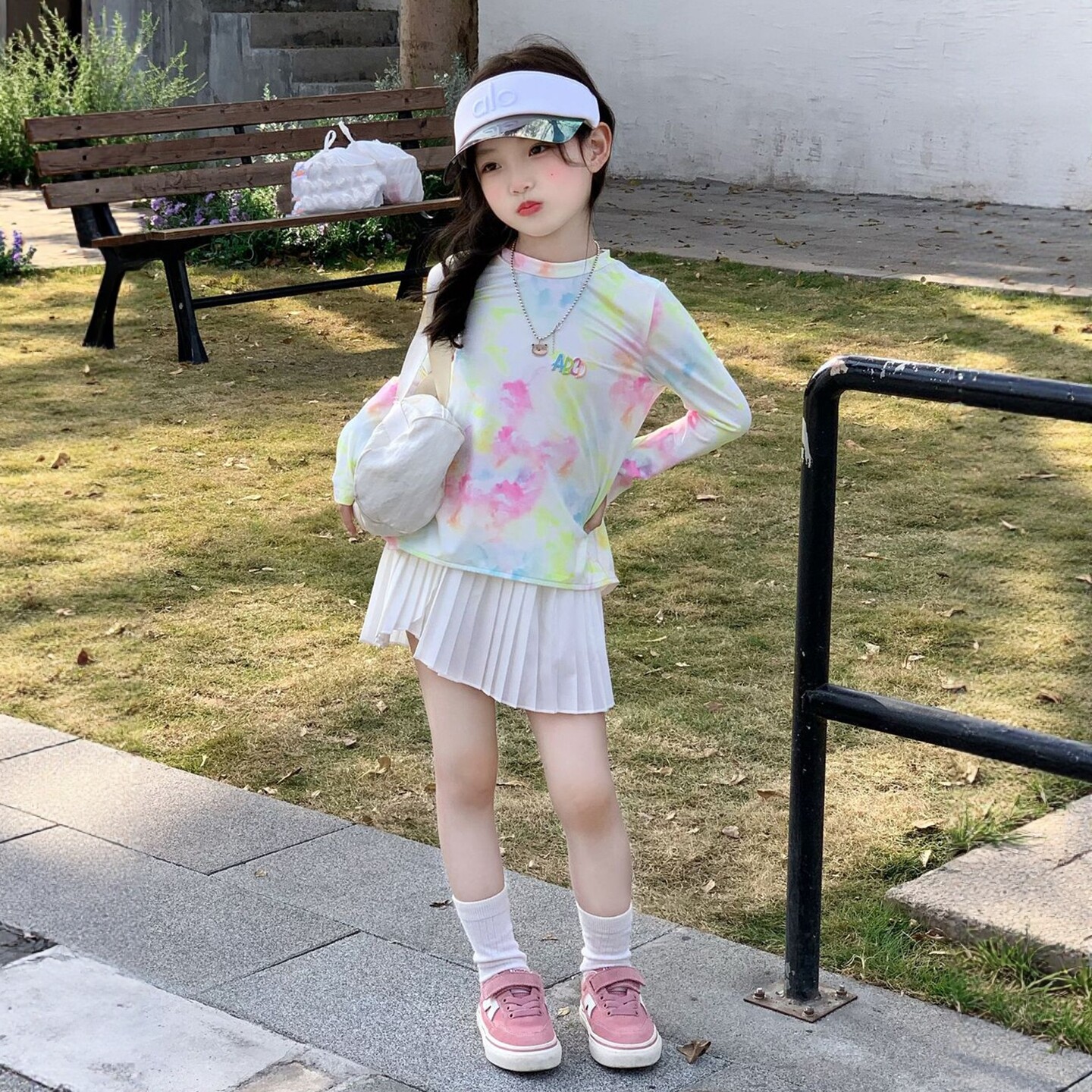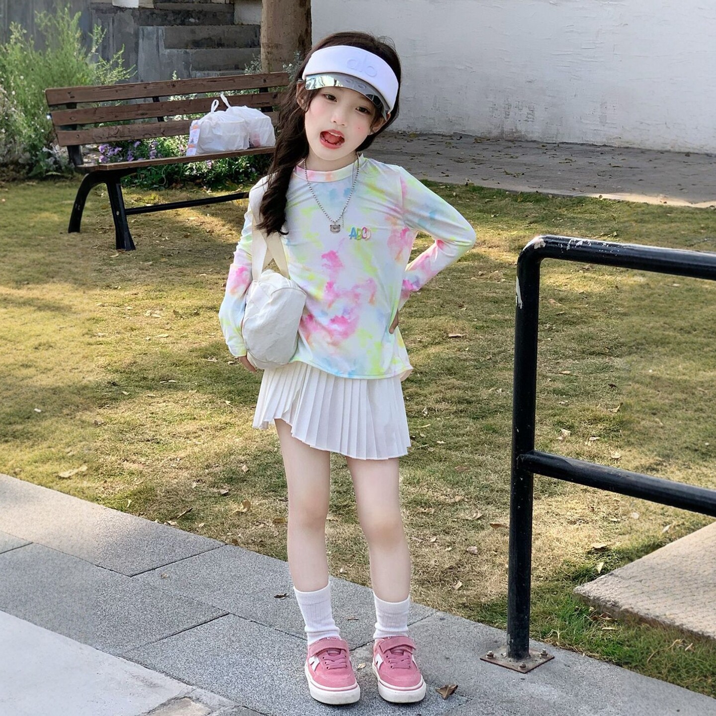 女童户外百搭长袖上衣套装2026春夏季新款儿童防晒T恤扎染套头衫t