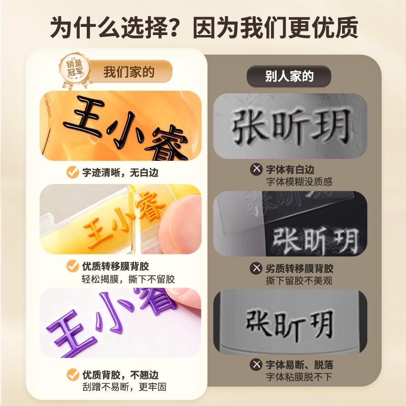 姓名贴定制中小学生儿童撕膜留字名字贴立体防水文具用品转印贴纸