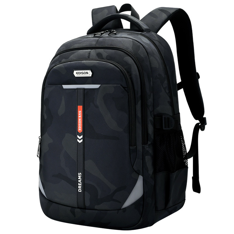 爱迪生书包男生初中高中大容量减负护脊大学生背包新款迷彩双肩包