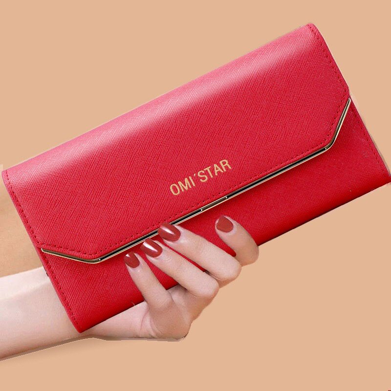 钱包女长款三折2025新款女士皮夹时尚真皮女款品牌专柜正品钱夹薄