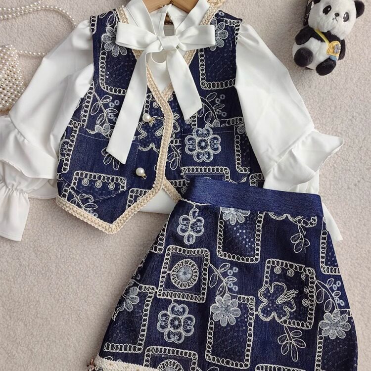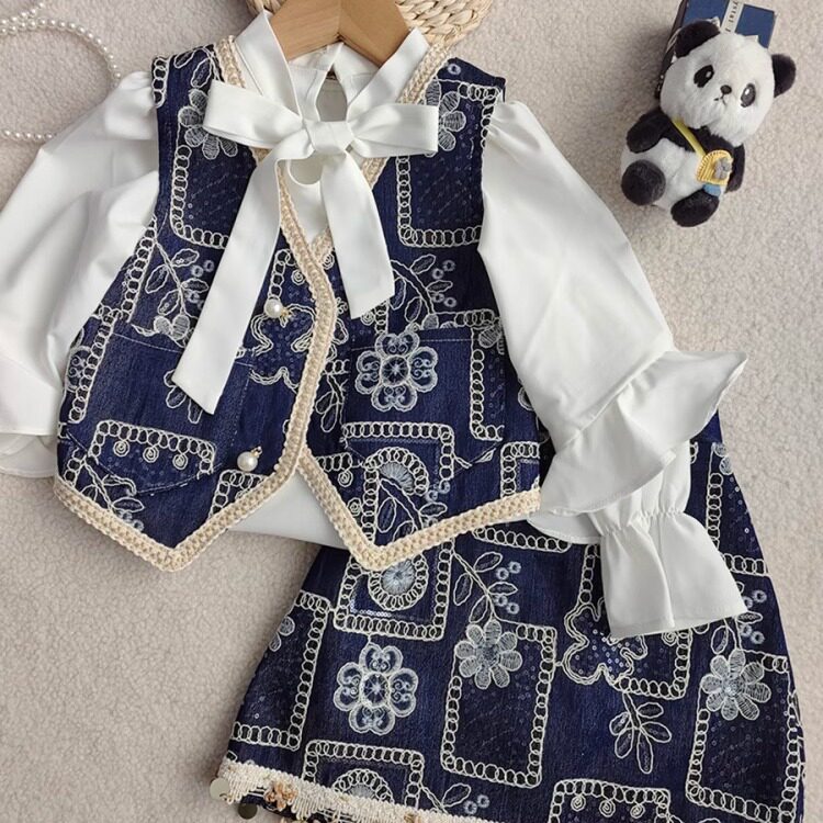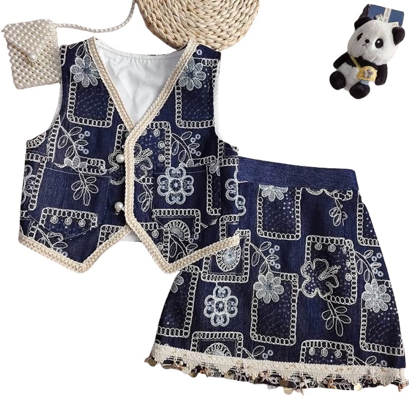 女童套装马甲短裙两件套夏季重工刺绣洋气时髦童装2025新款公主潮