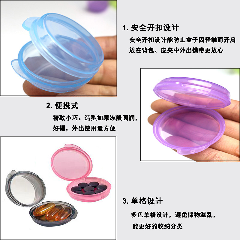 七彩色圆形塑料便携式随身迷你收纳盒小零件首饰药盒一日分药小盒