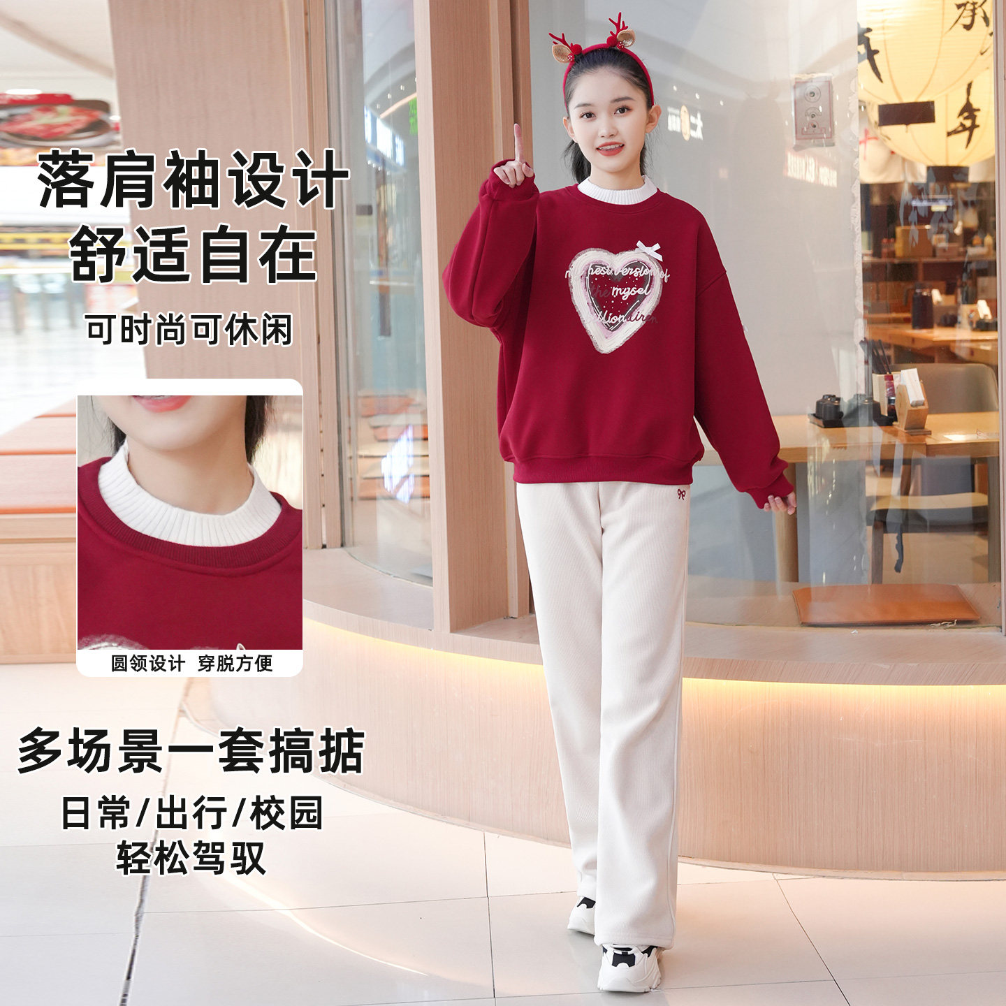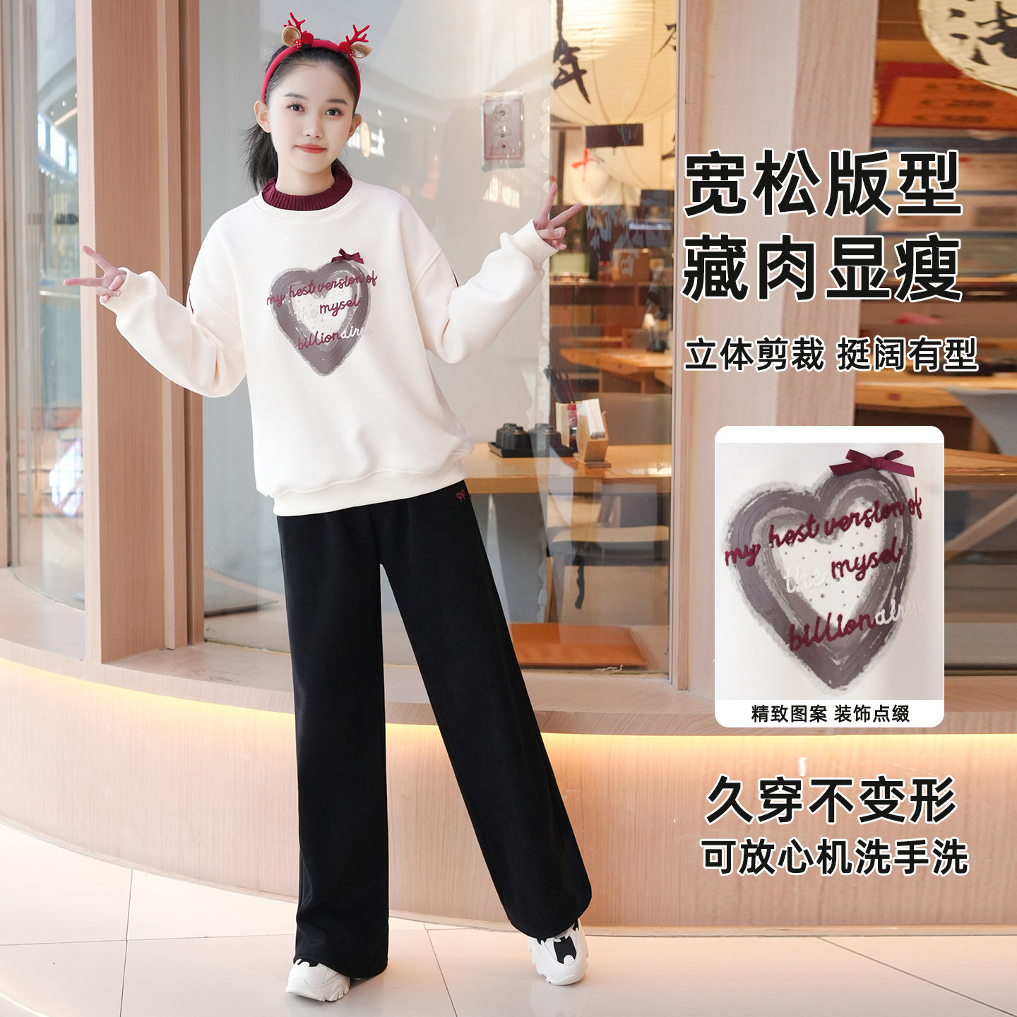 女大童加绒套装冬装新款青少年女孩学生时尚卫衣休闲裤保暖套装