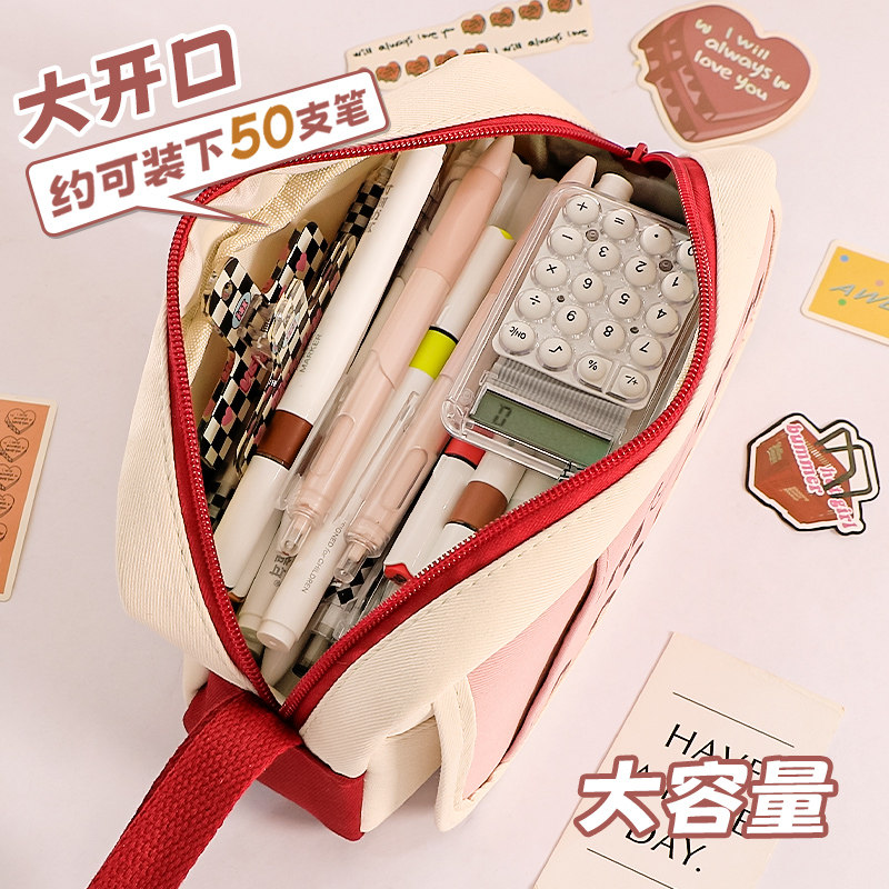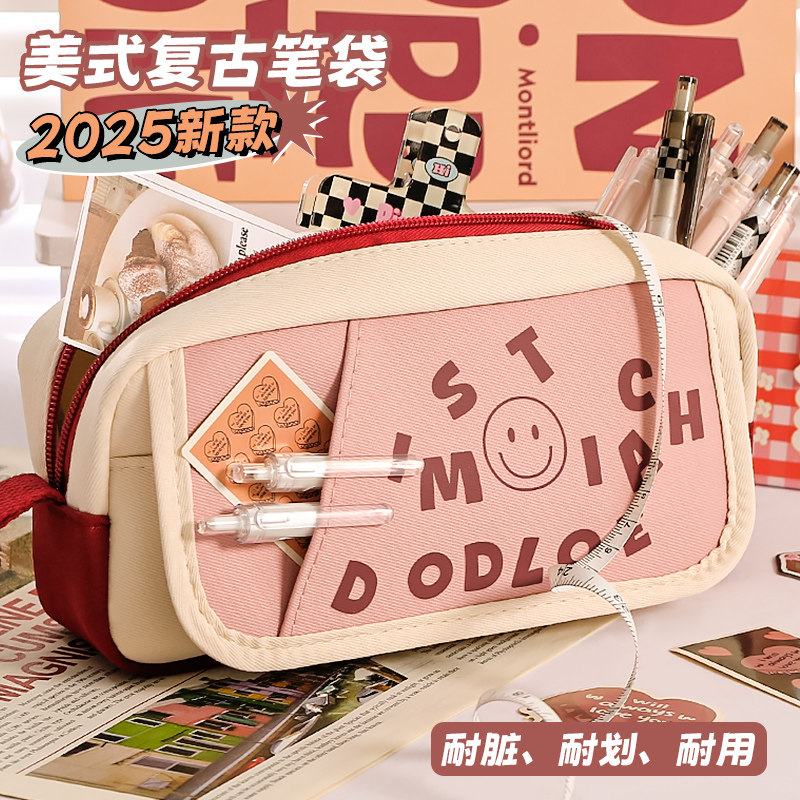 2025新款美式耐脏笔袋ins女生小众小学初中多功能高颜值中小学生文具袋铅笔袋大容量复古手提黑色小众设计