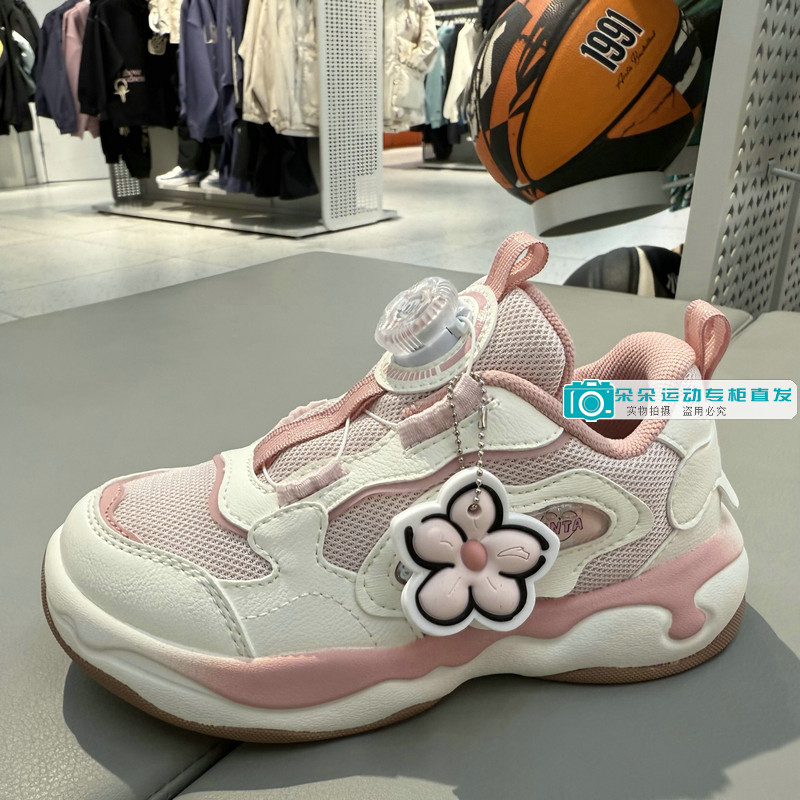 安踏儿童26新年春款女小童旋钮网面潮流时尚运动休闲鞋322619920