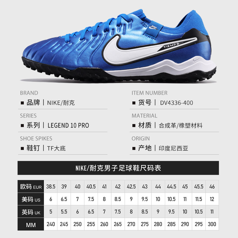 耐克足球鞋男传奇系列LEGEND 10 PRO TF碎钉人草地训练比赛传控款