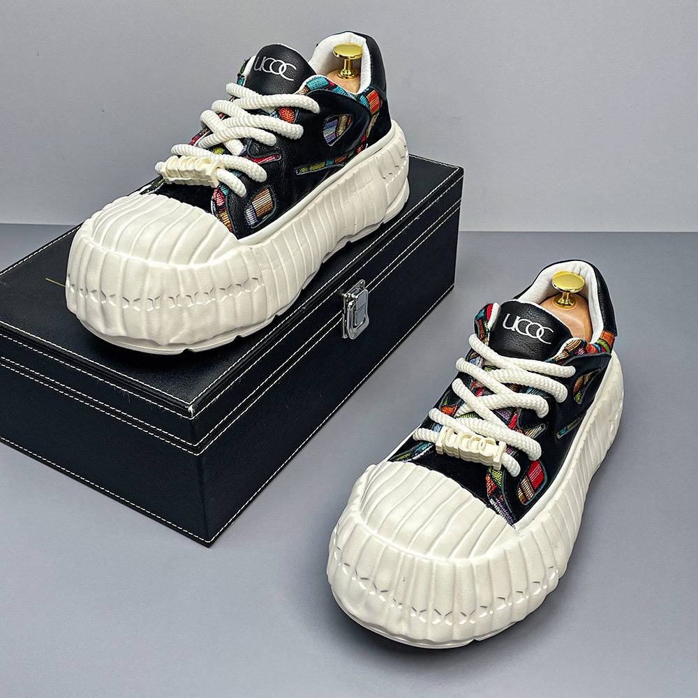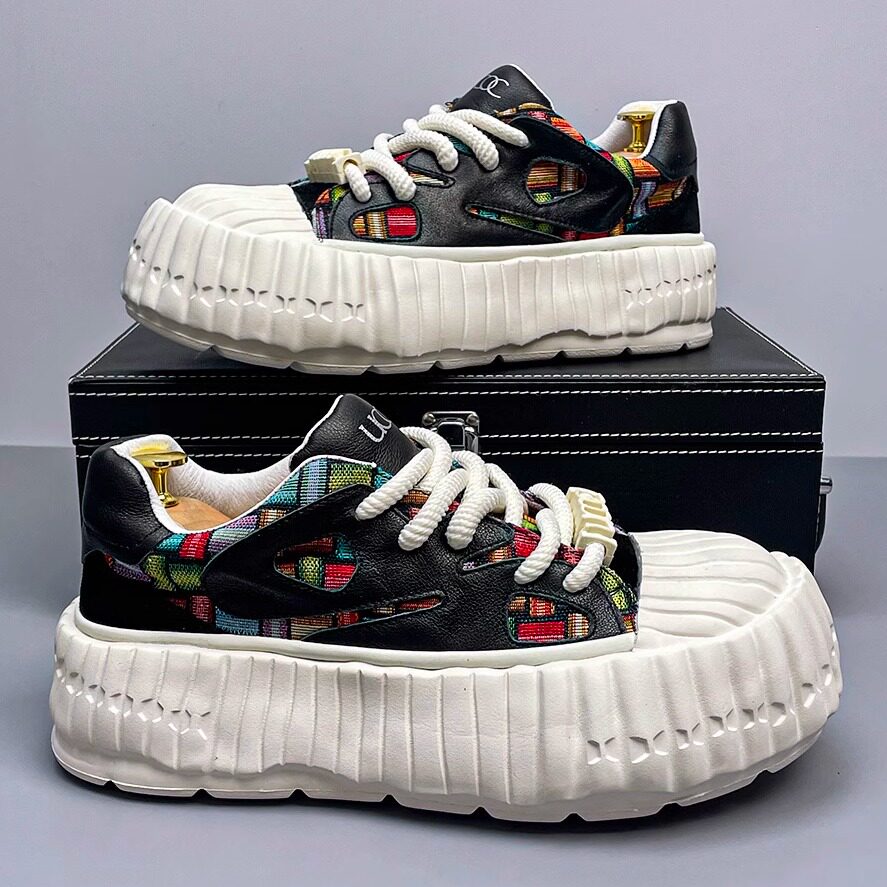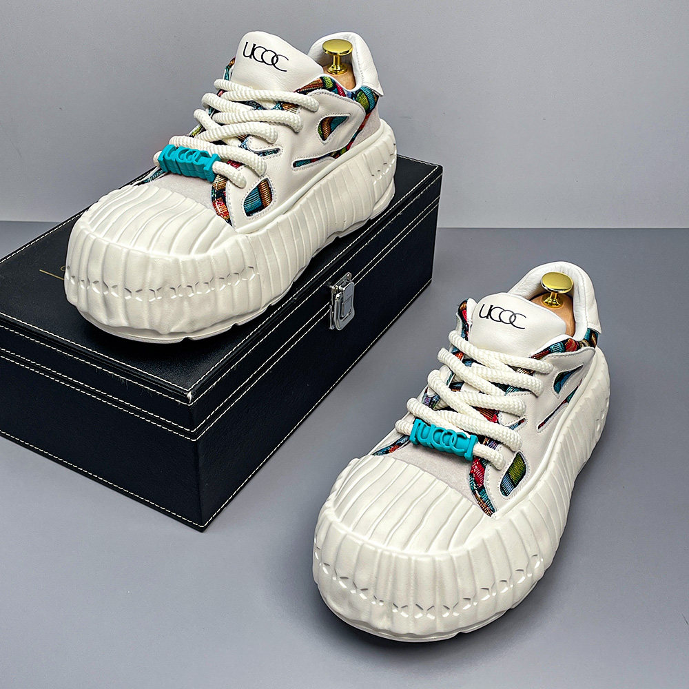 真皮小白鞋男款春季透气头层牛皮板鞋时尚拼色大头男鞋休闲运动鞋