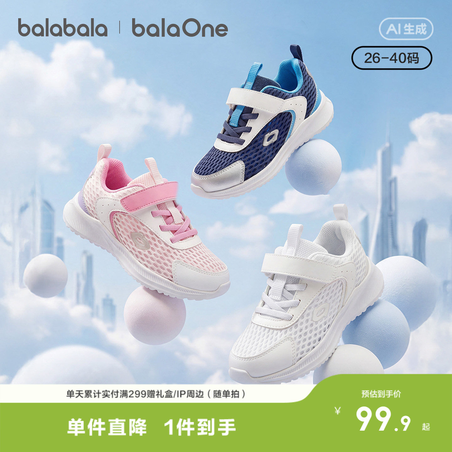 巴拉巴拉童鞋儿童运动鞋男女童2026夏季新透气网面大孔轻便跑鞋子