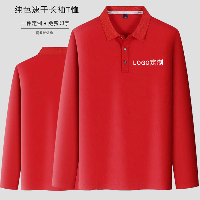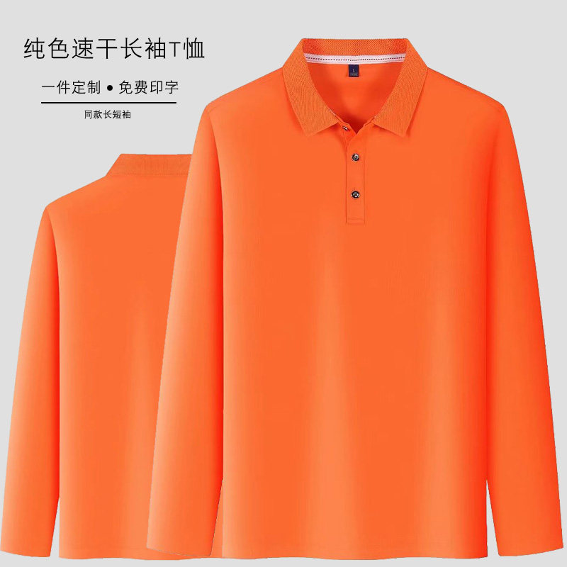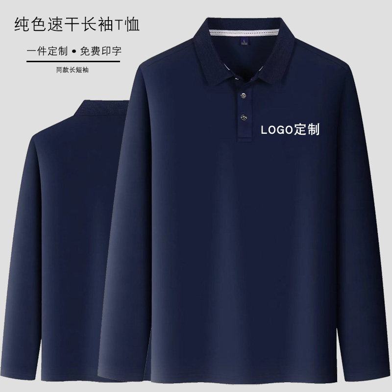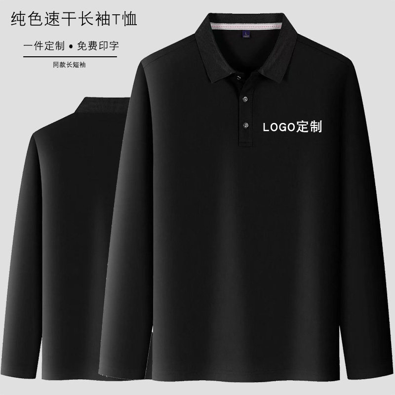 纯色速干衣班服有翻领Polo衫长袖工厂员工上班T恤男女定制印logo