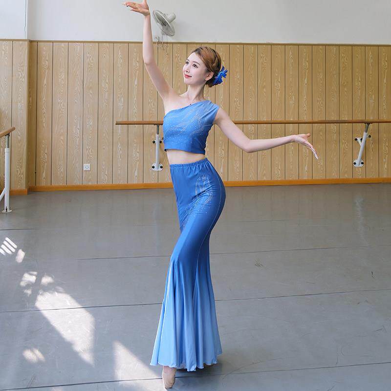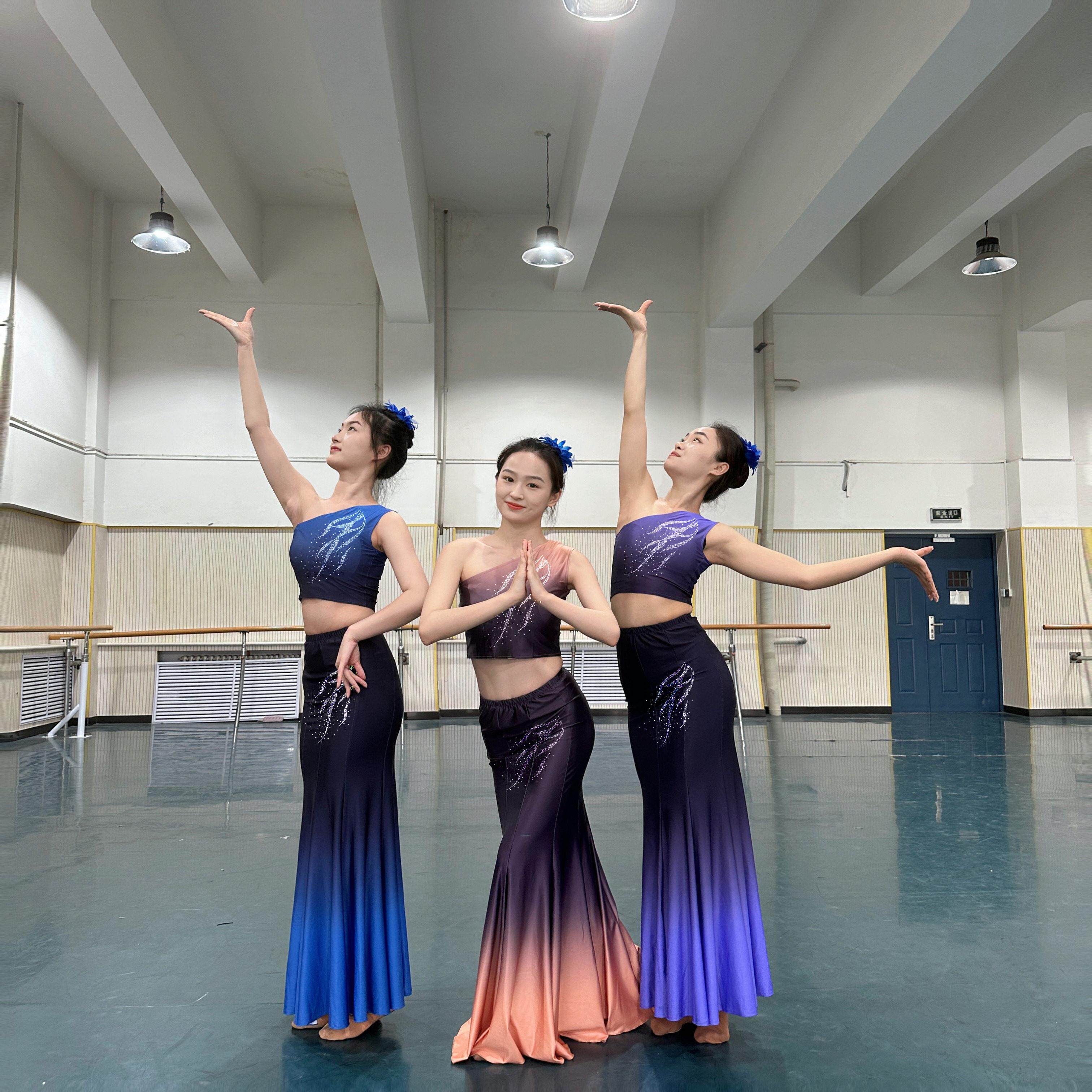 傣族舞蹈裙子女成人半身包臀长裙渐变艺考培训练习裙民族表演服饰