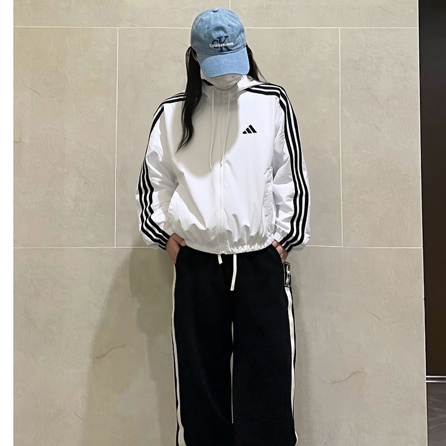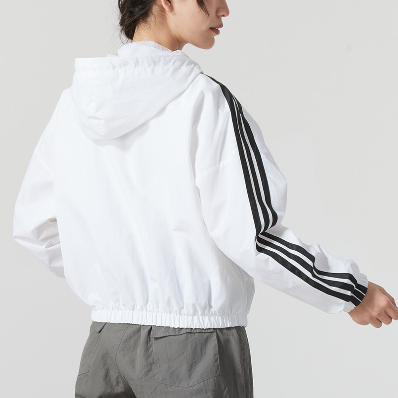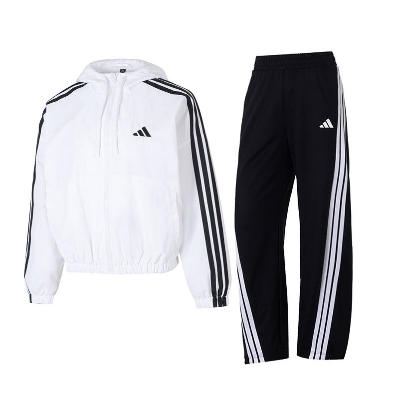 阿迪达斯三条纹套装女2026春季新款运动服连帽夹克外套梭织长裤子