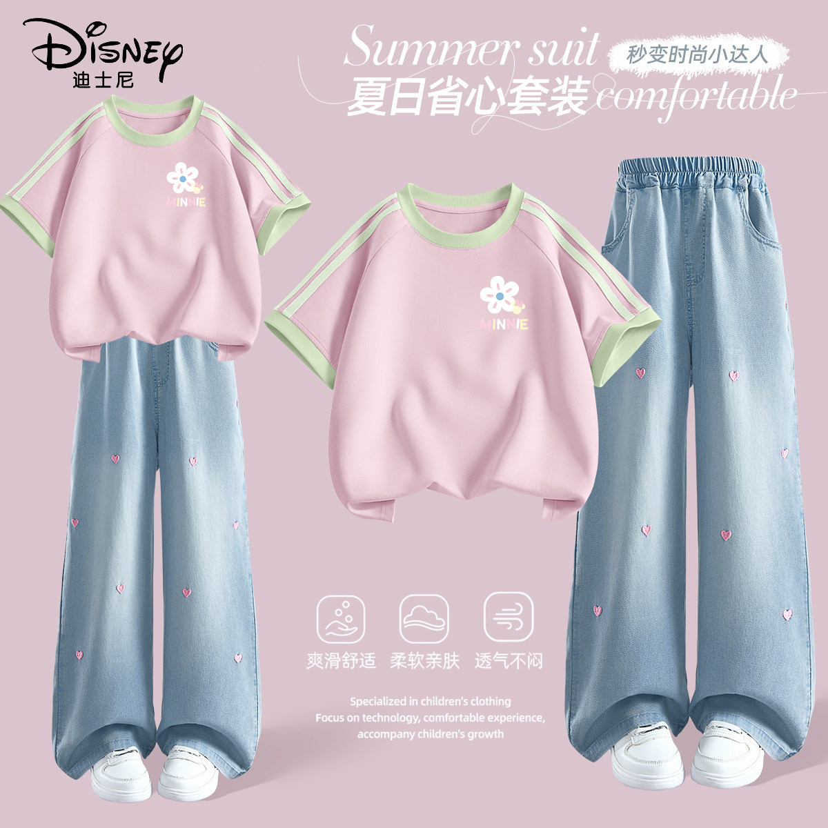 迪士尼女童套装夏洋气童装2026新款女孩韩系穿搭夏季上衣儿童夏装