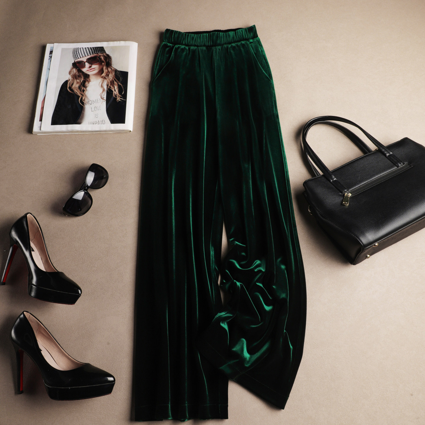 【西江月】国风翡翠绿丝绒阔腿裤子2026新款今年流行爆款休闲裤女