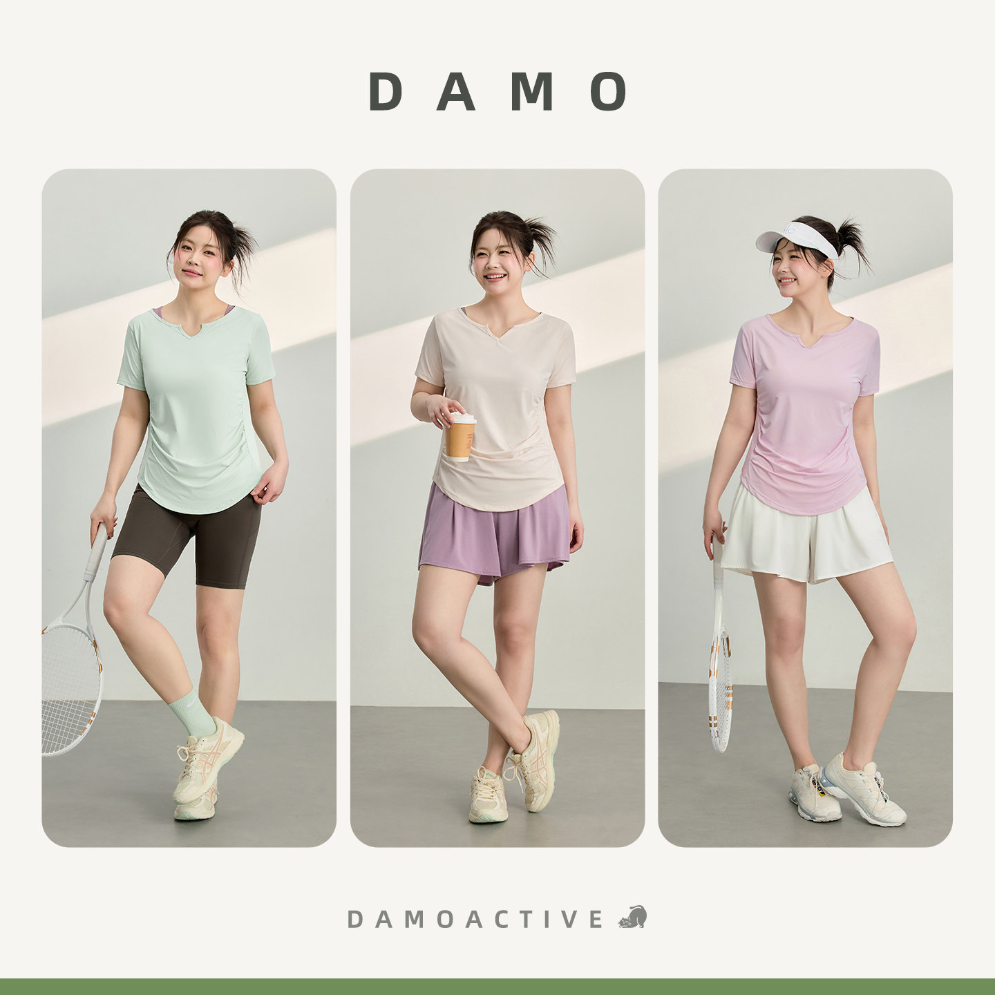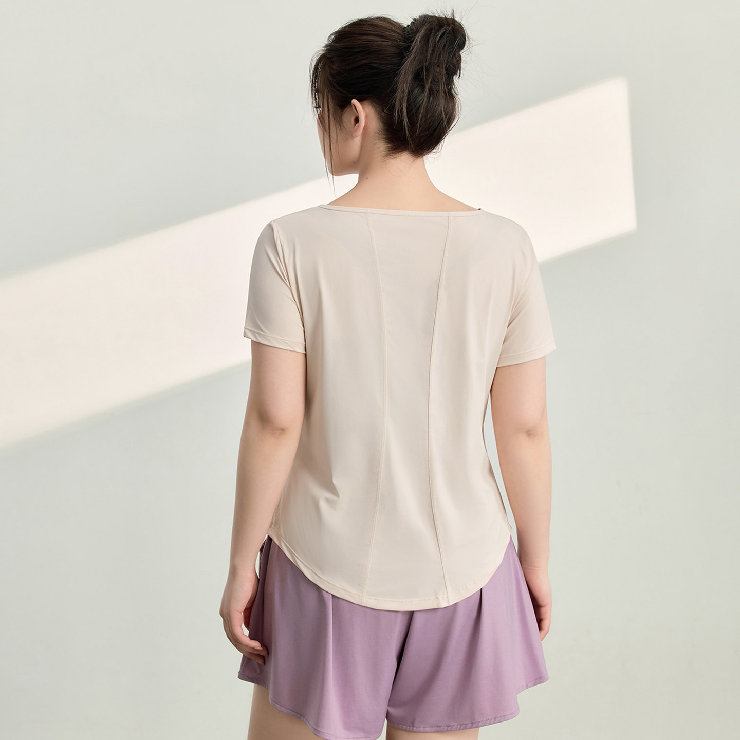 运动短袖T恤女夏季速干瑜伽服上衣凉感修身胖mm大码运动健身套装