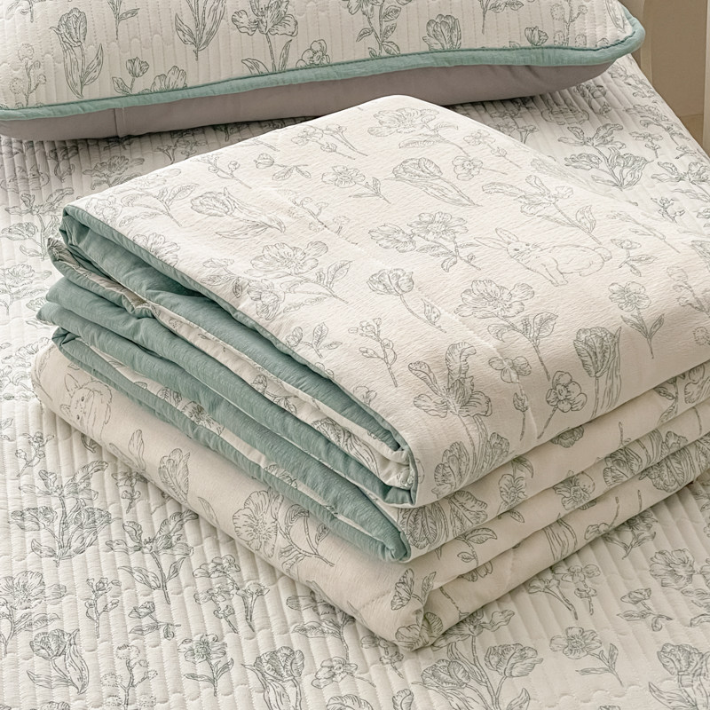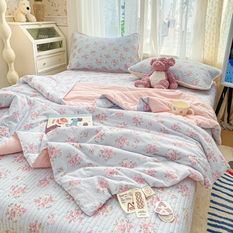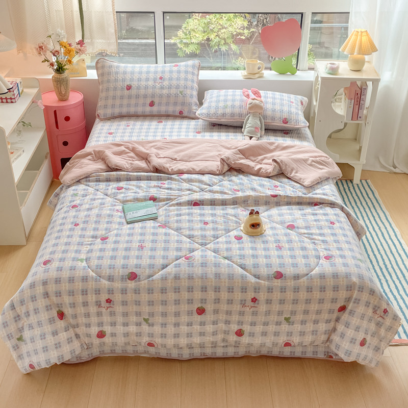 ins 风草莓格空调被夏凉被四件套可机洗夏季薄款亲肤床上用品
