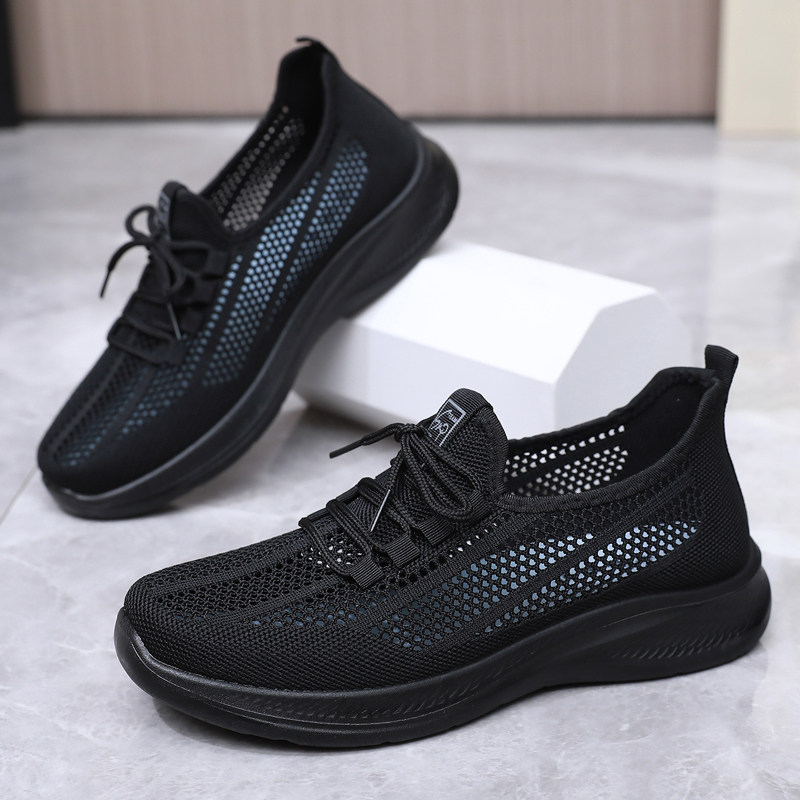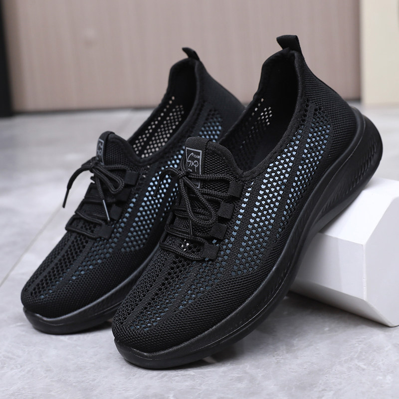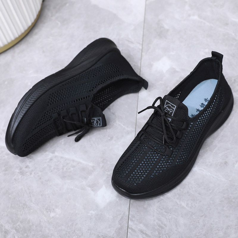 黑色鞋子工作鞋女久站不累脚夏季网鞋透气网面软底防滑上班厨师鞋