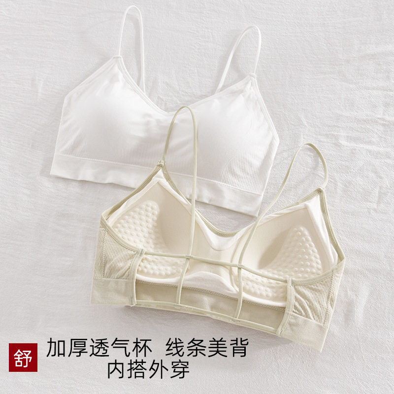 春新款美背内衣女士小胸聚拢文胸无钢圈一体固定加厚杯细肩带胸罩