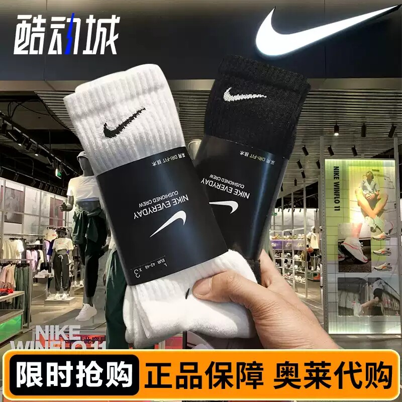 耐克nike袜子运动纯棉正品夏季薄款中筒长筒短筒男女船袜短袜白色